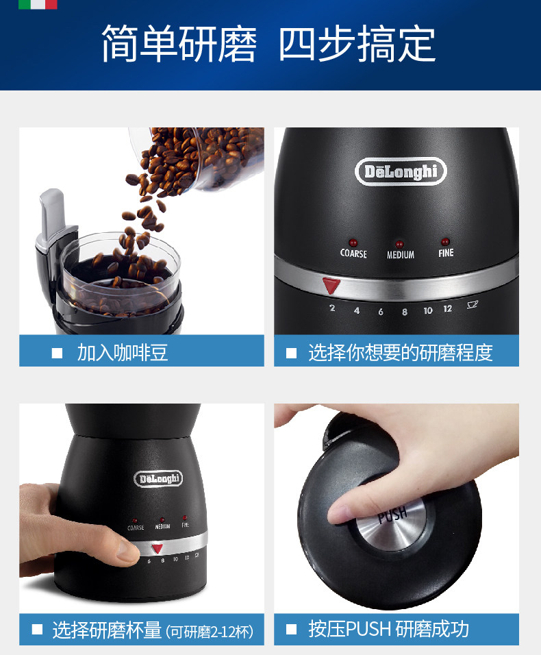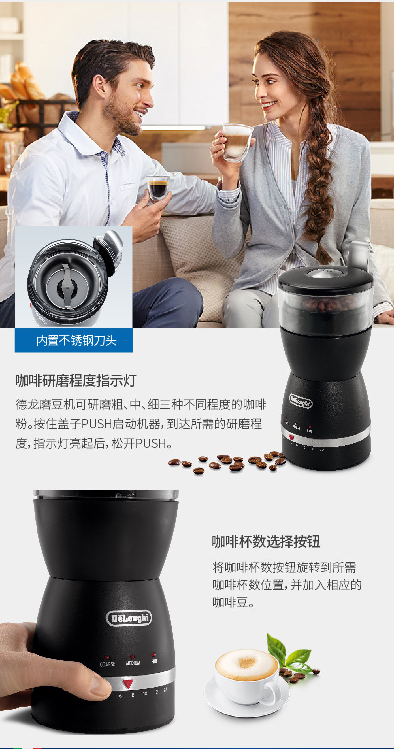 Delonghi/德龙 KG49 家用咖啡豆研磨机磨豆机电动可调节研磨粗细