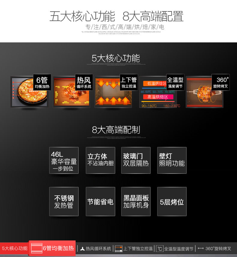 Hauswirt/海氏 HO-F5 电烤箱 家用 烘焙 上下独立控温 高端F系列