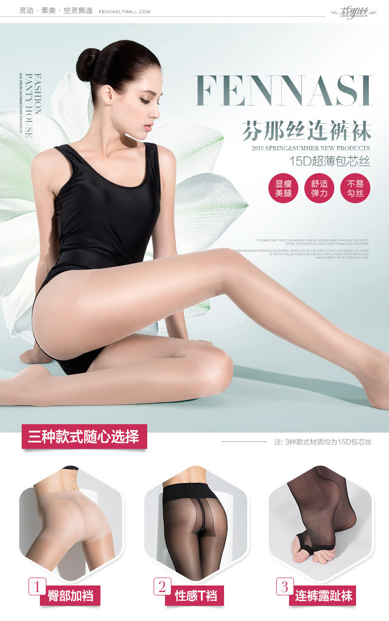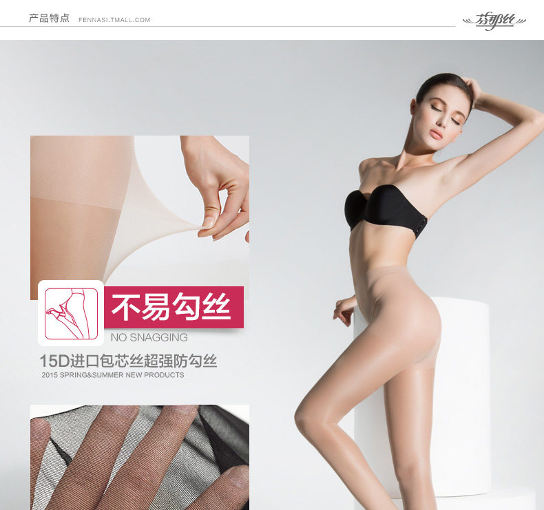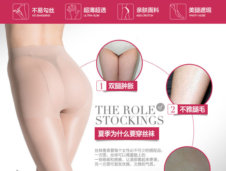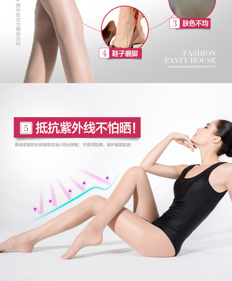 芬那丝袜子薄款防脱丝袜夏款开档连裤袜性感丝袜防勾丝[5双]