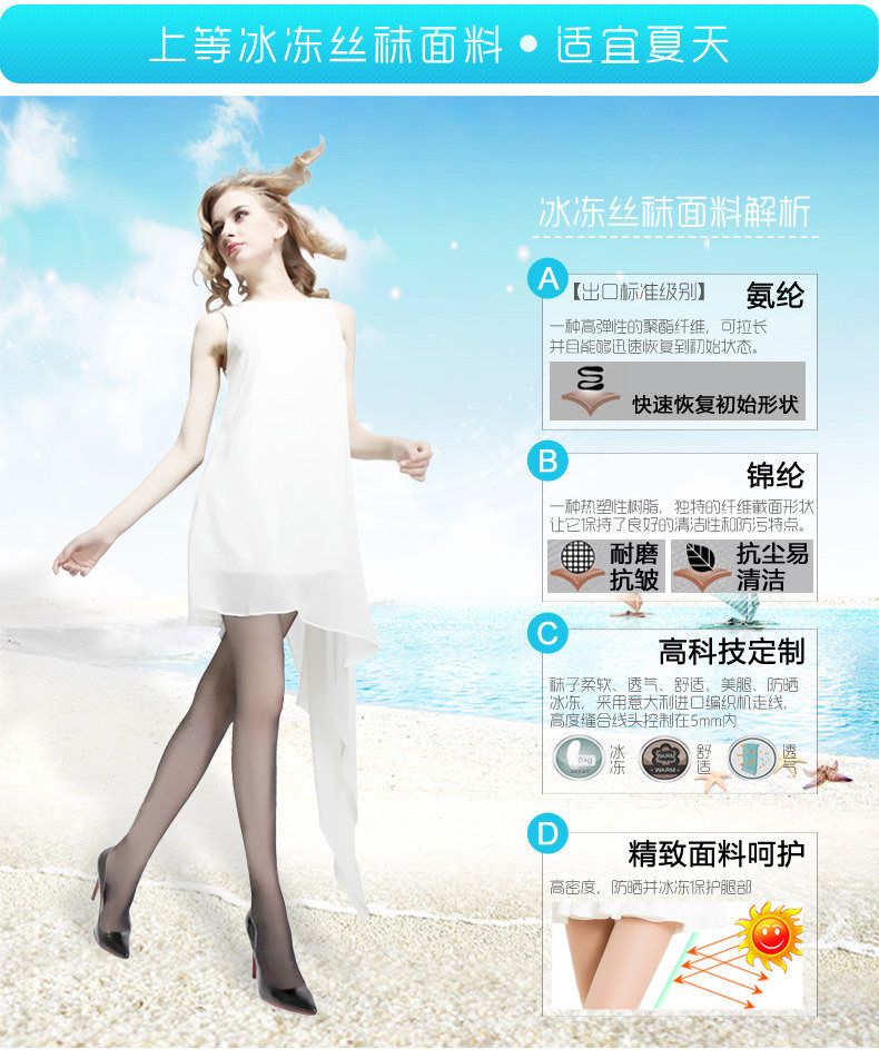 芬那丝袜子薄款防脱丝袜夏款开档连裤袜性感丝袜防勾丝[5双]