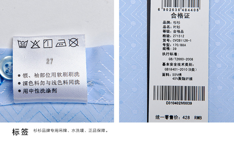 GFirs/杉杉春季新品男纯色商务休闲长袖衬衫男韩版修身衬衣