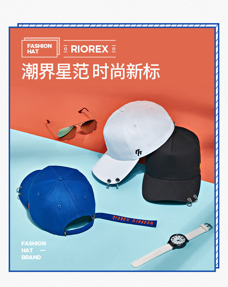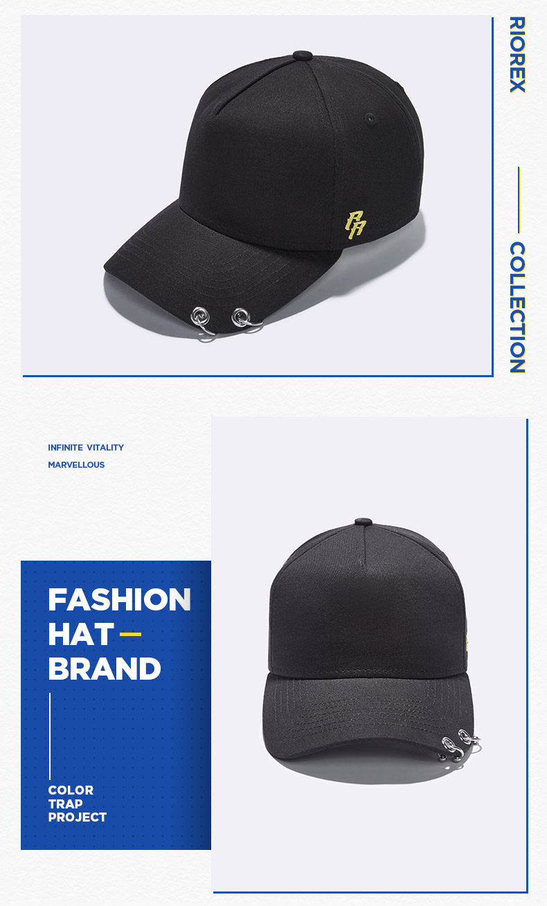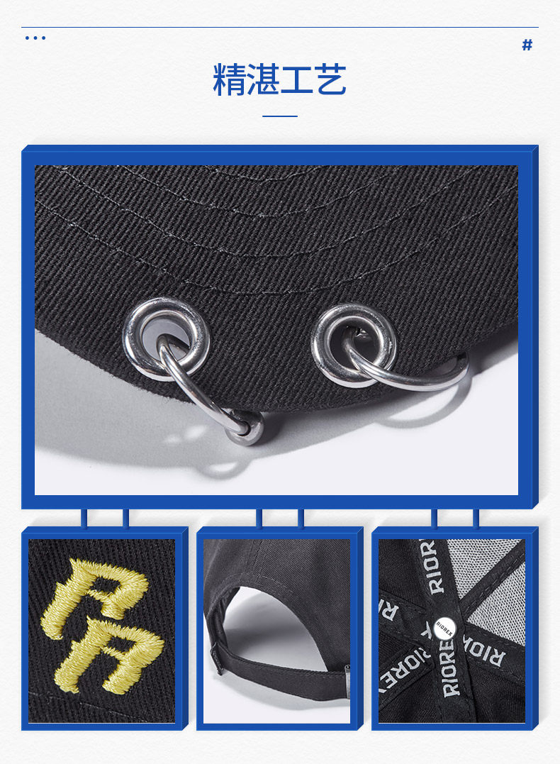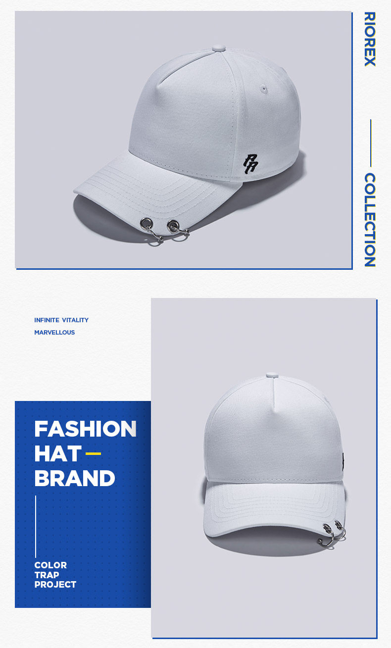 RIOREX棒球帽女男士弯檐帽潮牌鸭舌帽女嘻哈帽长飘带铁环情侣帽子