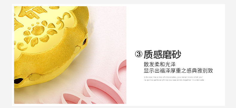 周大生黄金吊坠女3D硬金兔斯基足金转运珠挂坠正品
