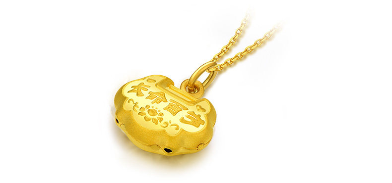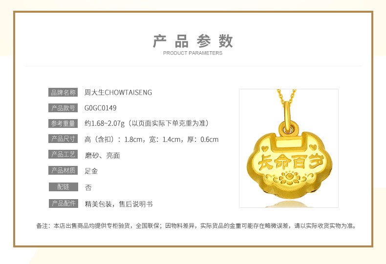 【大版】周大生黄金吊坠女足金999心形皇冠挂坠项坠不含项链正品