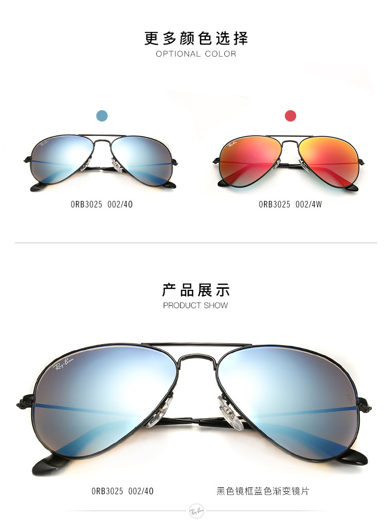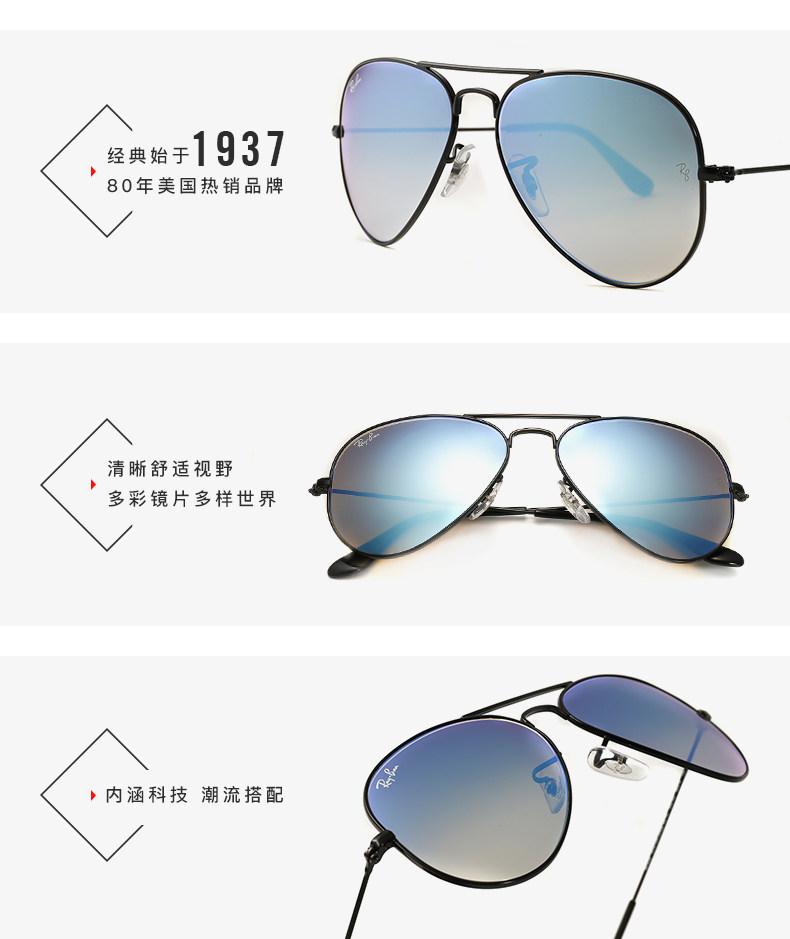 以下是RayBan雷朋太阳眼镜男女款蛤蟆镜个性潮流渐变彩膜反光镜0RB3025的详细说明,厂家介绍,求购联系信息,最终解释权归陆逊梯卡(中国)投资有限公司所有