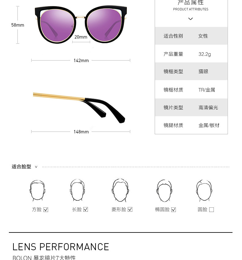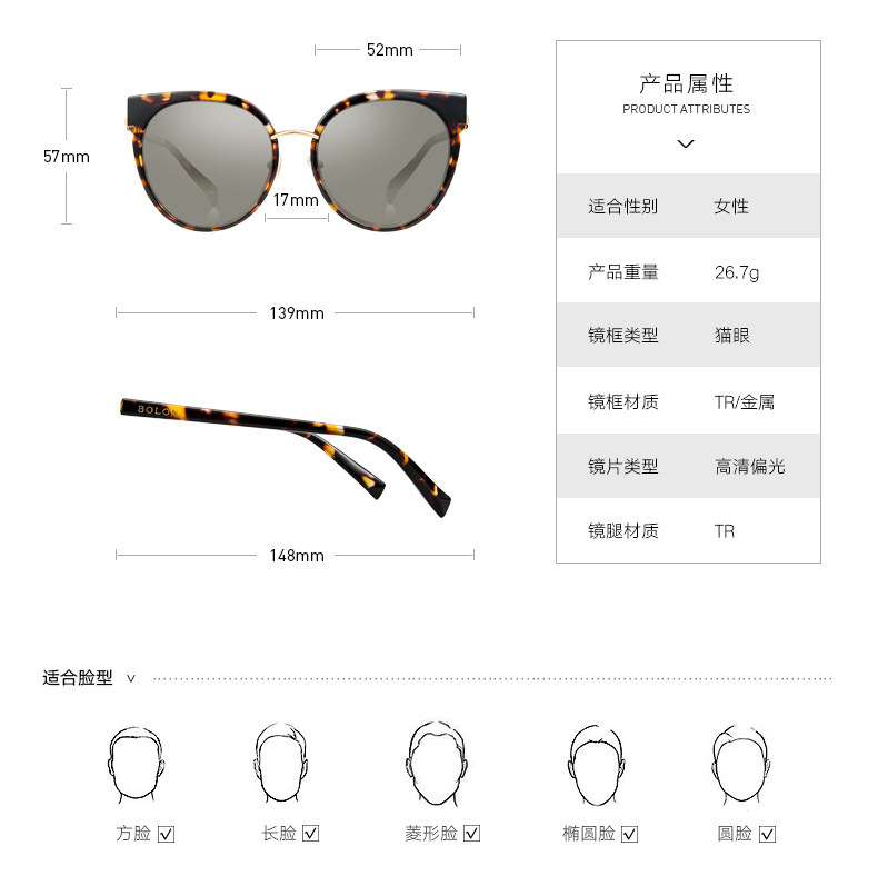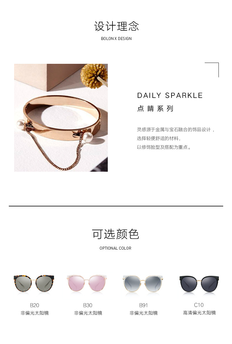 BOLON暴龙太阳镜女明星同款摩登优雅复古偏光墨镜时尚眼镜BL6001