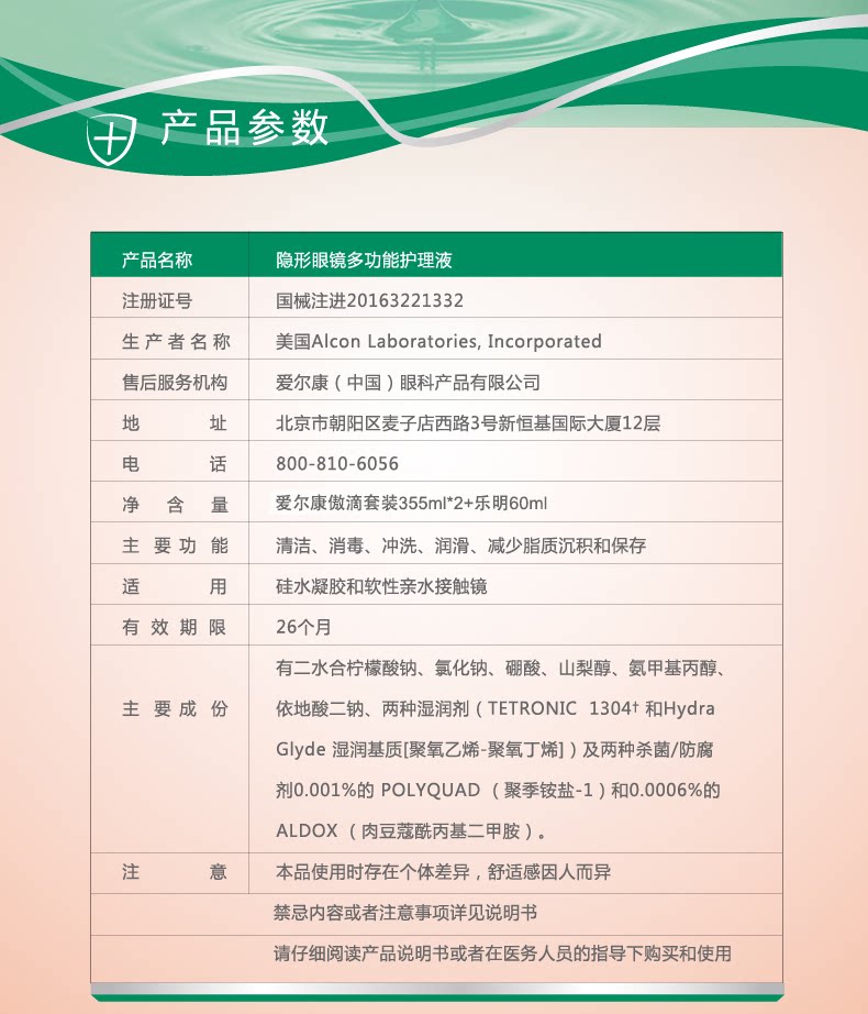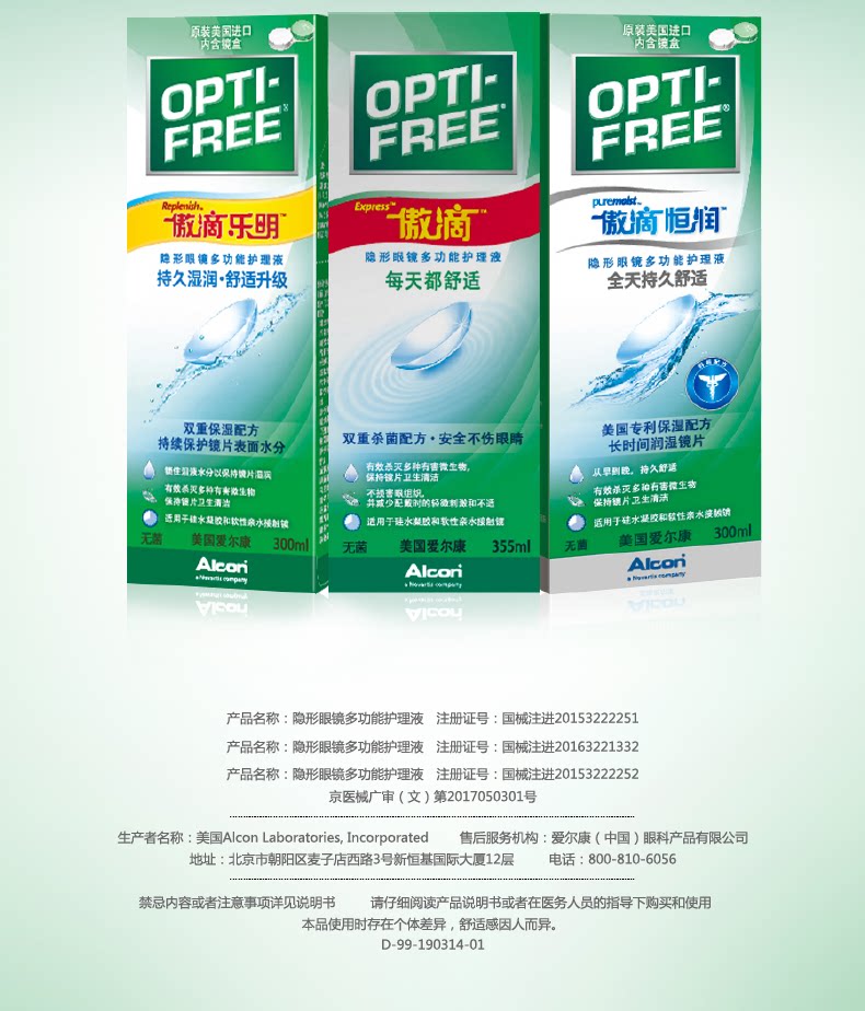 共有两种组合包装1、爱尔康傲滴355*2+乐明60ml 2、爱尔康傲滴355*2+傲滴60ml 两种组合随机发货!!!