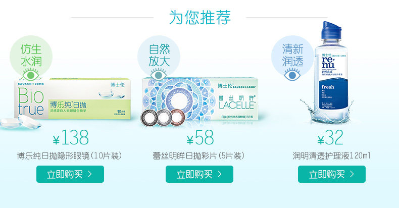 博士伦隐形近视眼镜缤纷时代年抛1片超薄高透氧