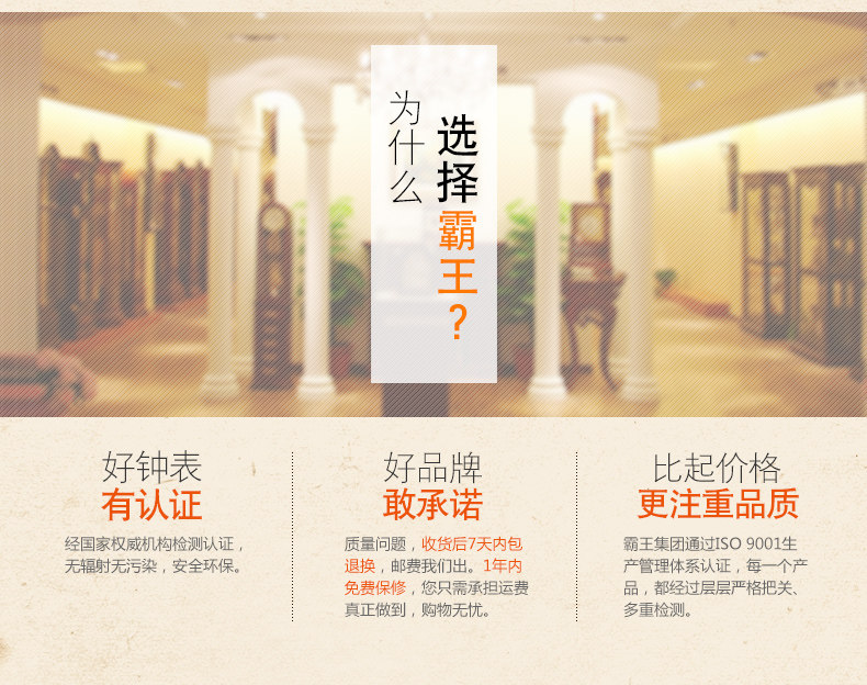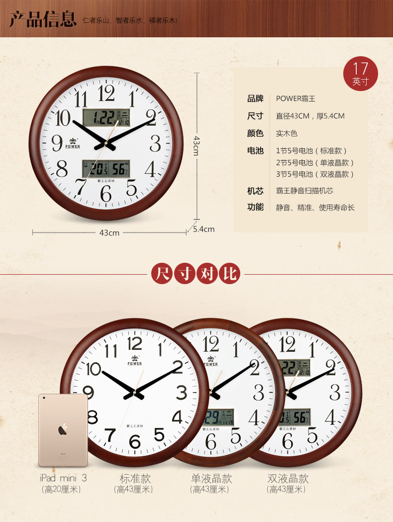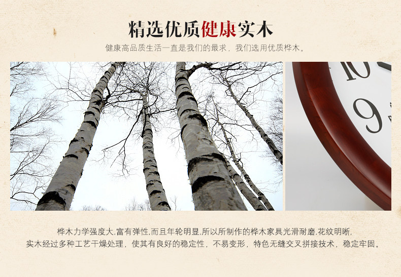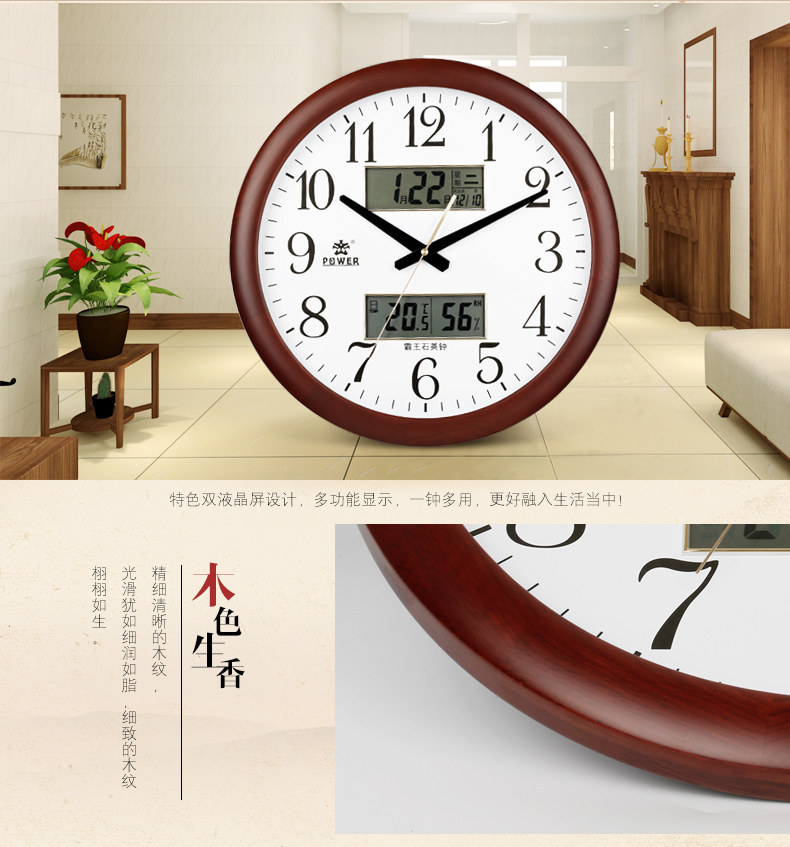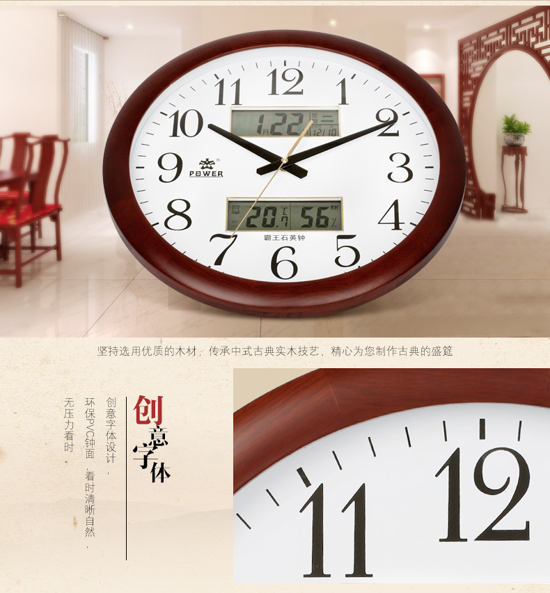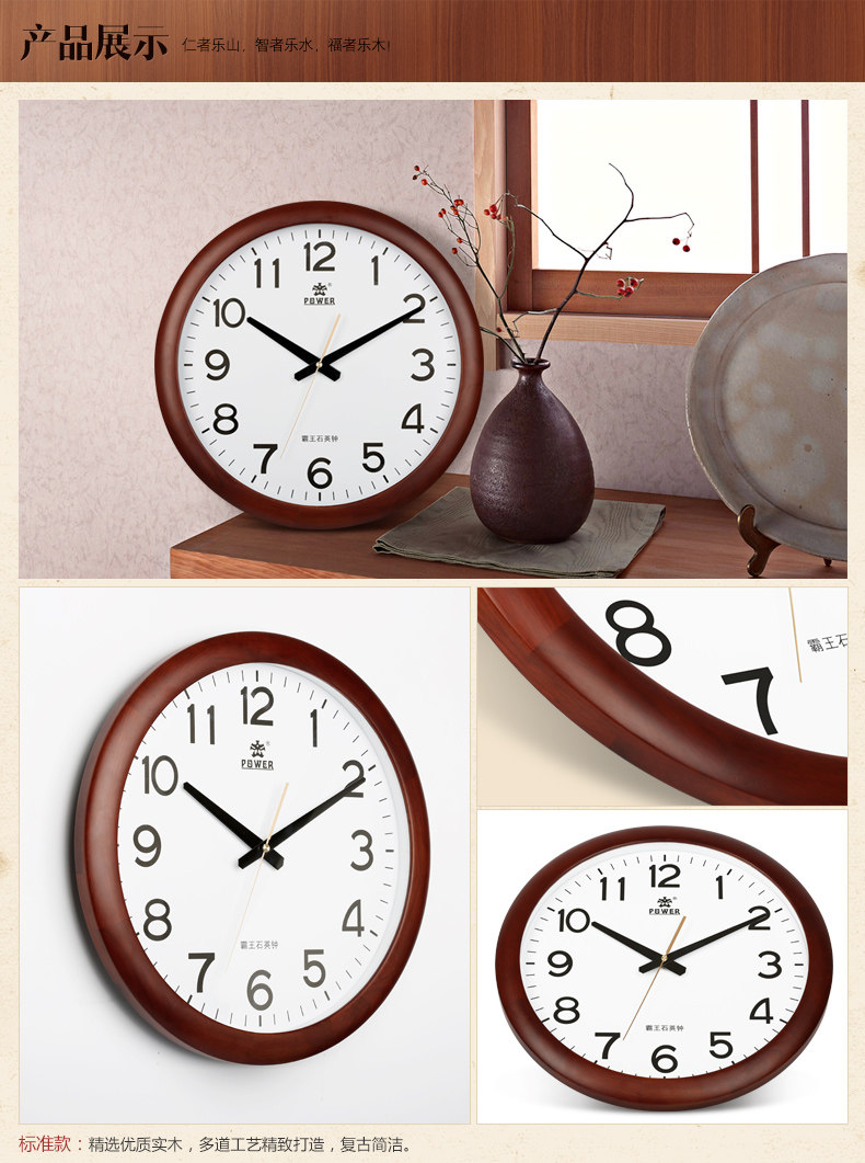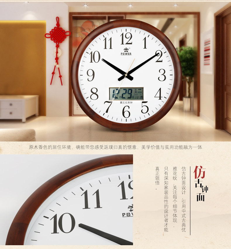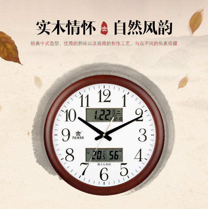 霸王钟表实木挂钟客厅中国风创意电子静音挂表欧式大壁钟石英时钟