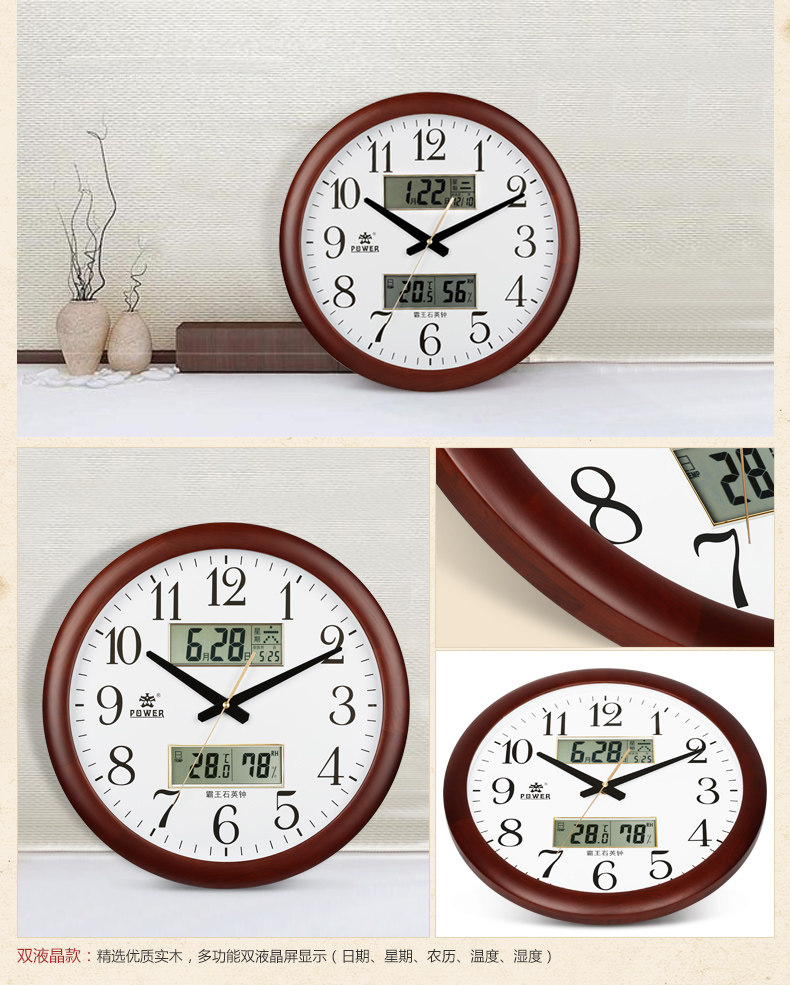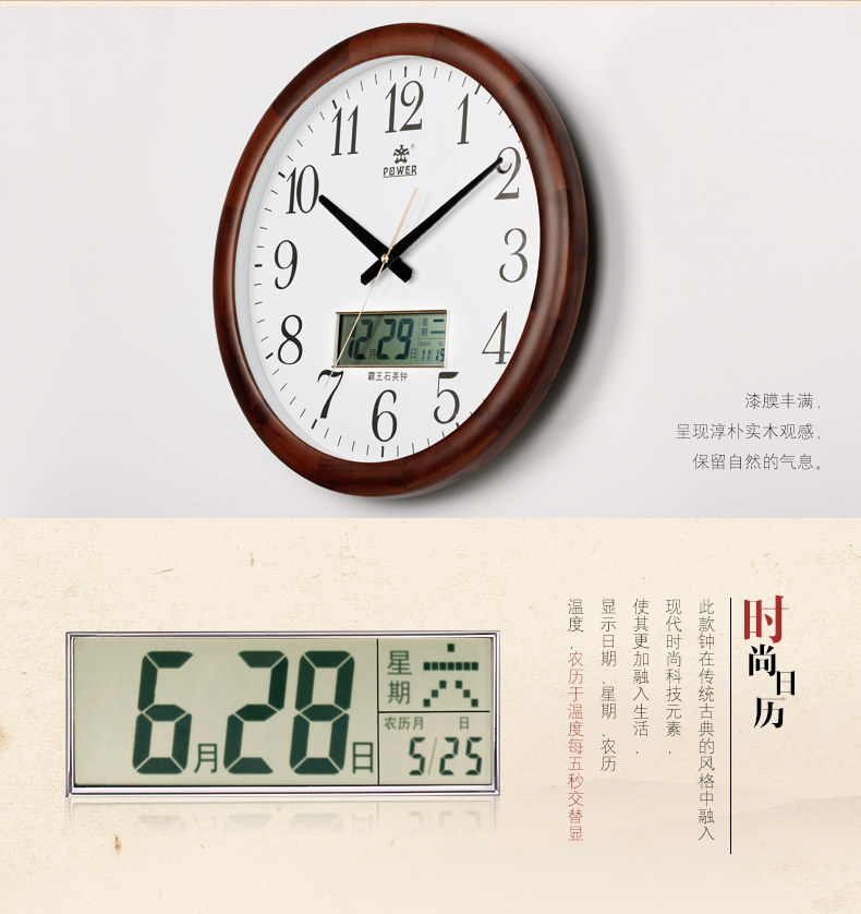 霸王钟表现代客厅挂钟时尚夜光挂表简约静音万年历时钟创意石英钟