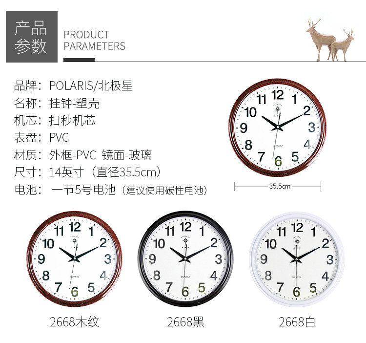 北极星静音钟表卧室现代时尚挂钟创意客厅挂表现代简约时钟石英钟