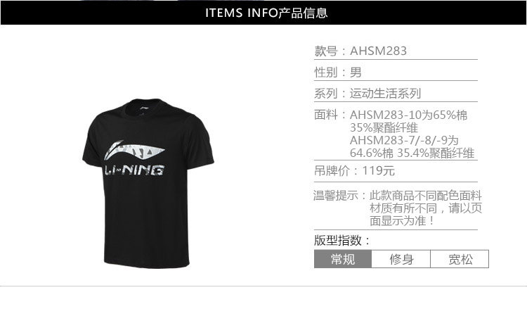 以下是李宁短袖T恤男士新款运动生活系列圆领潮流印花短装夏季运动服的详细说明,厂家介绍,求购联系信息,最终解释权归李宁(中国)体育用品有限公司所有