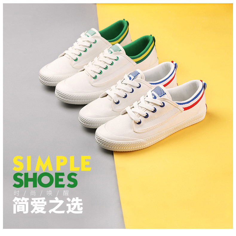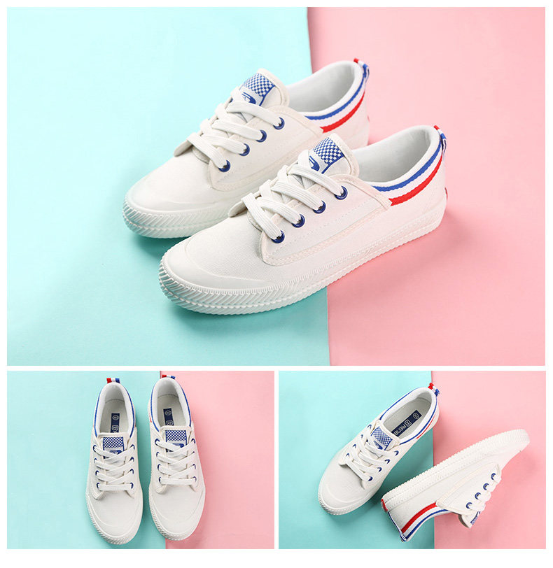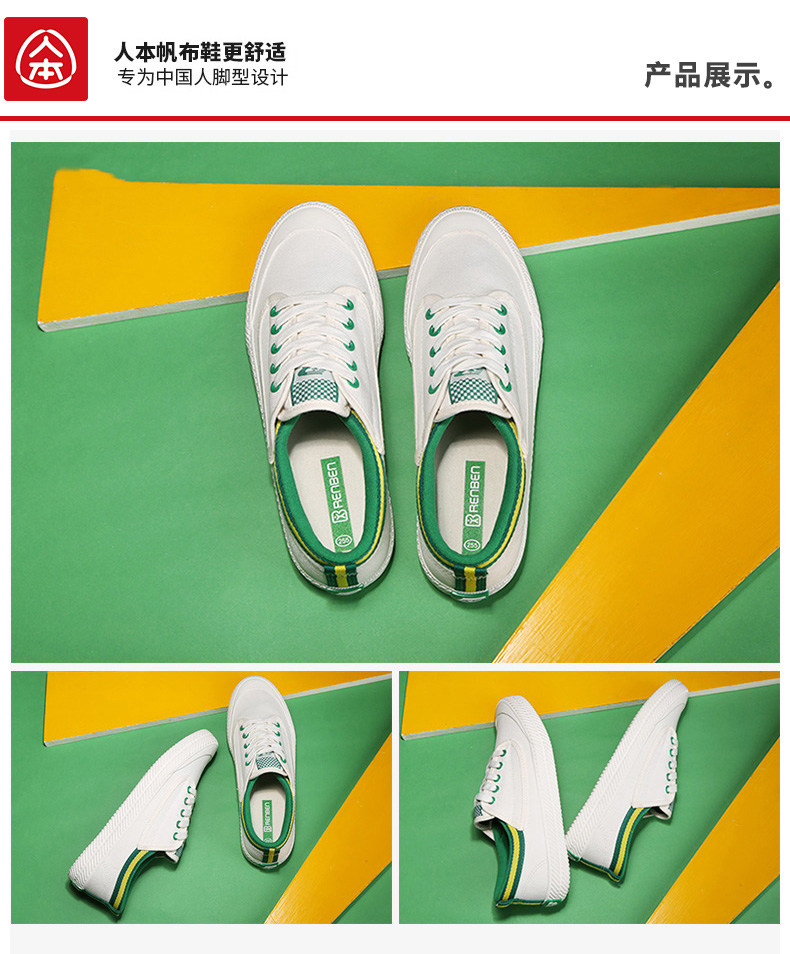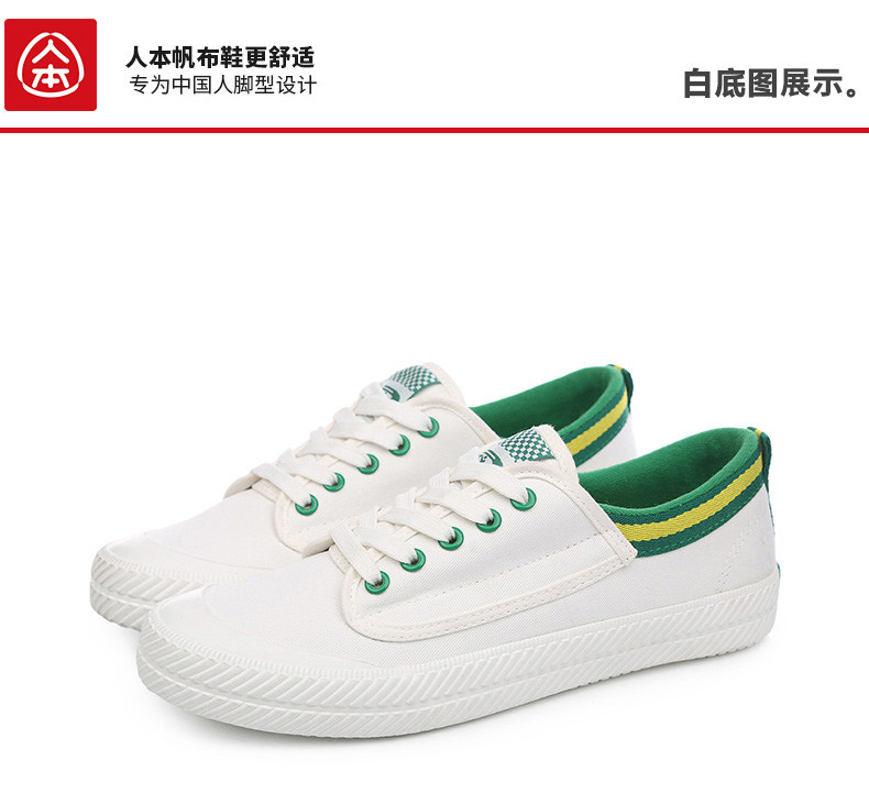 人本帆布鞋女百搭经典韩版平底板鞋女小白鞋透气低帮女系带布鞋潮