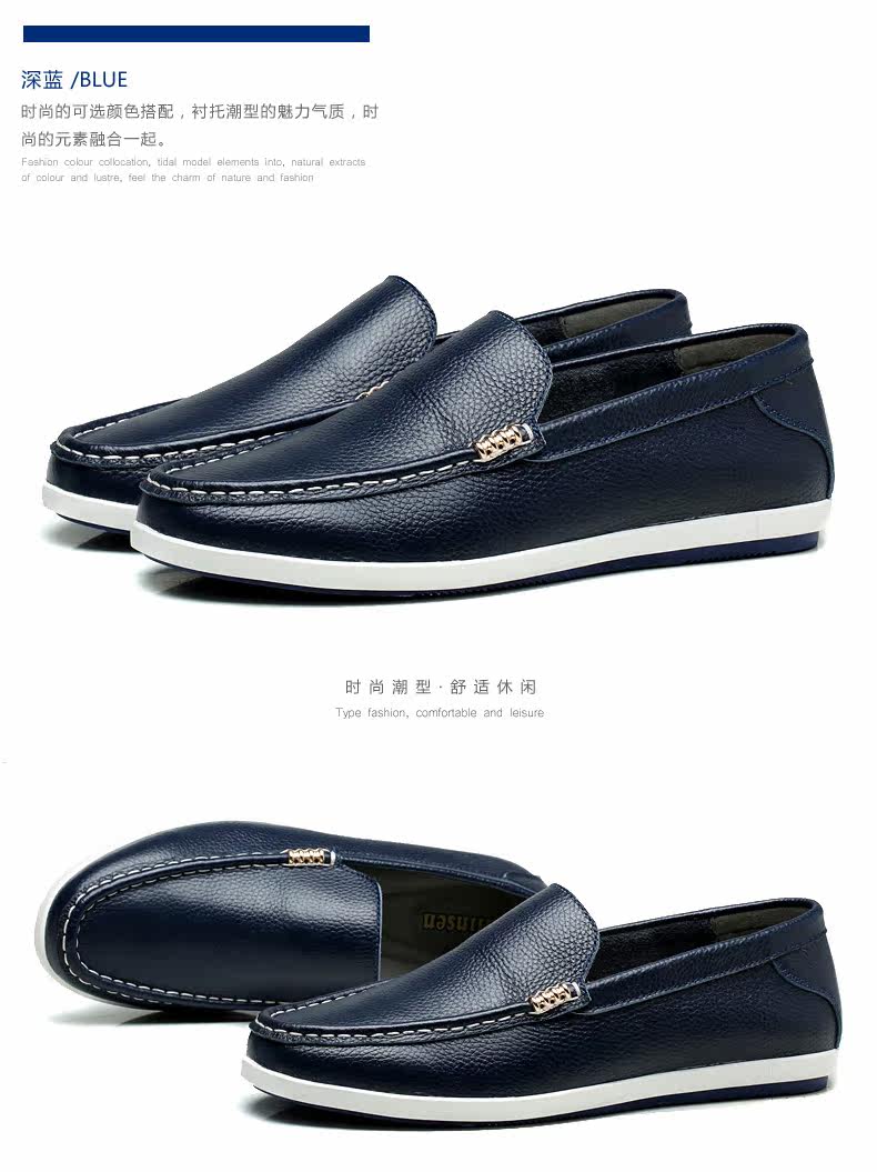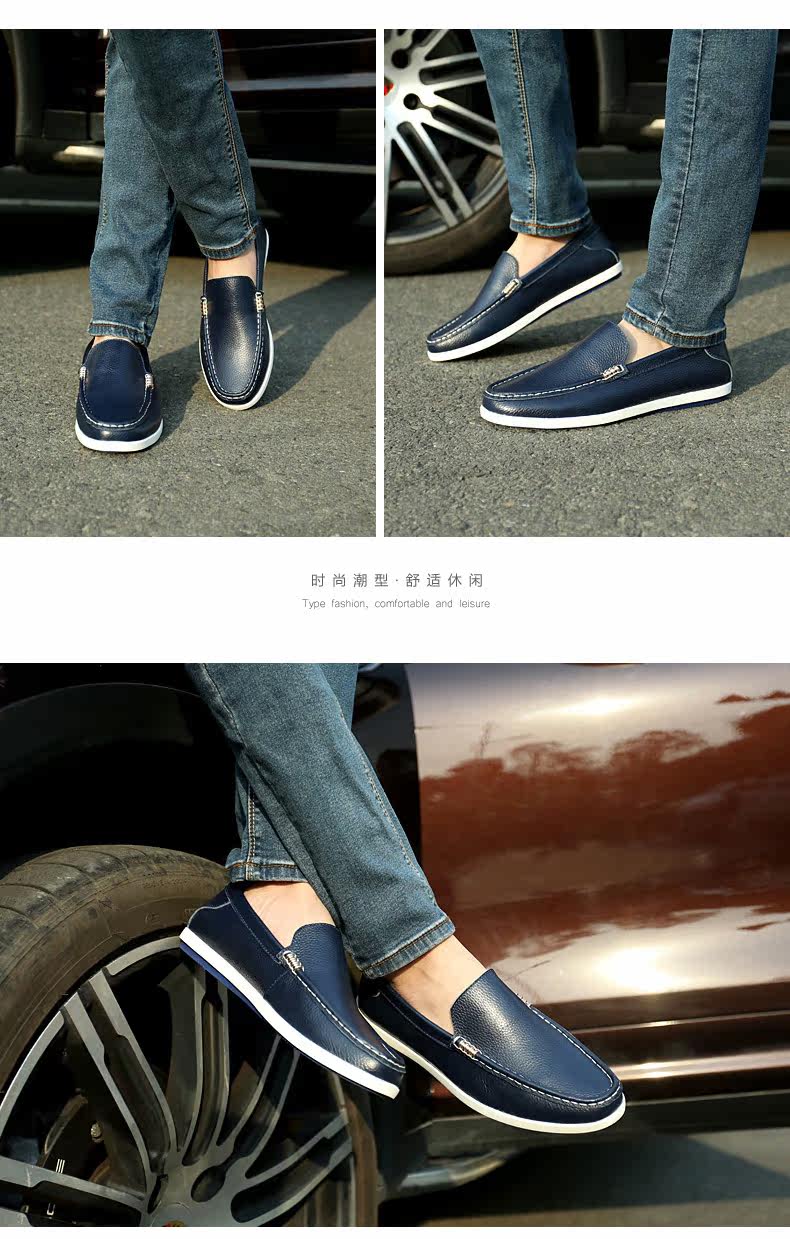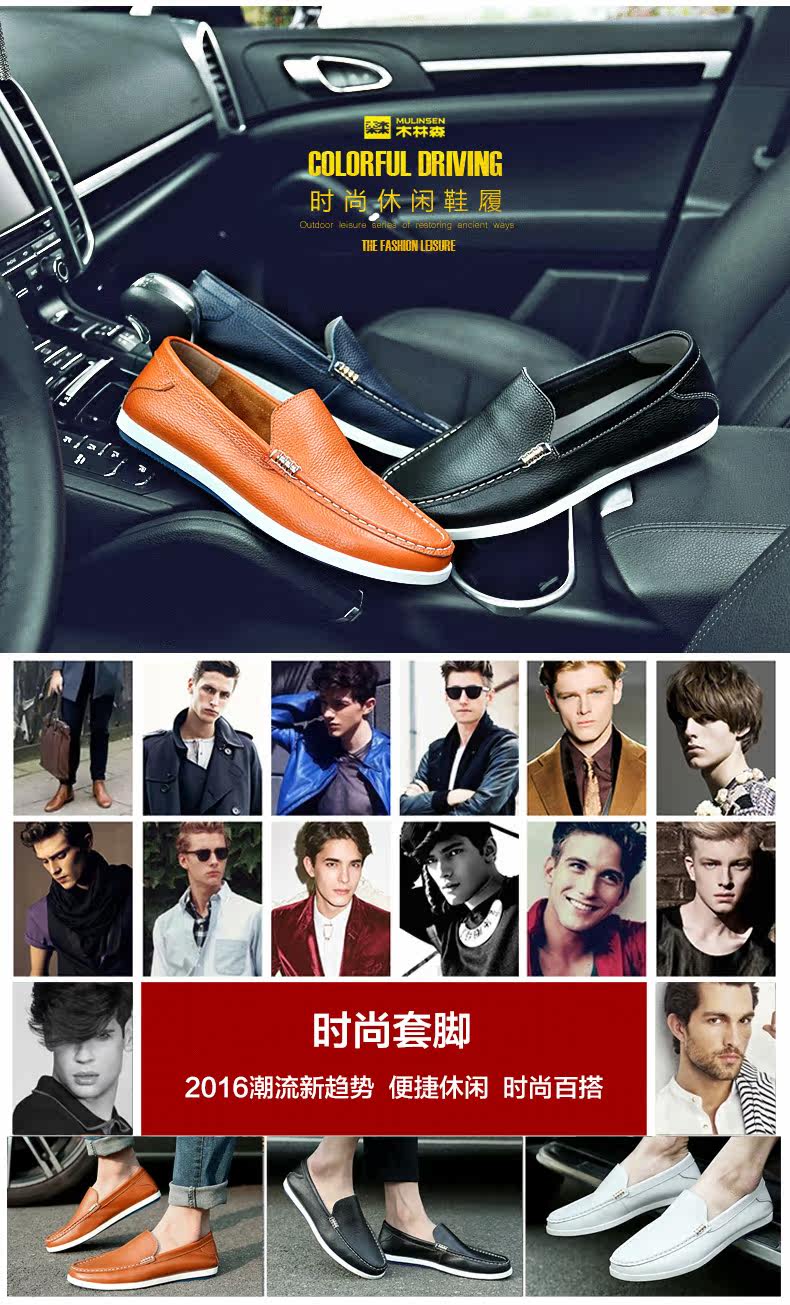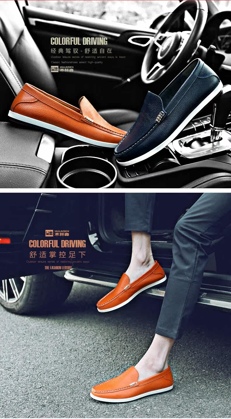 木林森男鞋夏季乐福鞋男真皮软面皮英伦男士休闲鞋皮鞋懒人潮鞋子