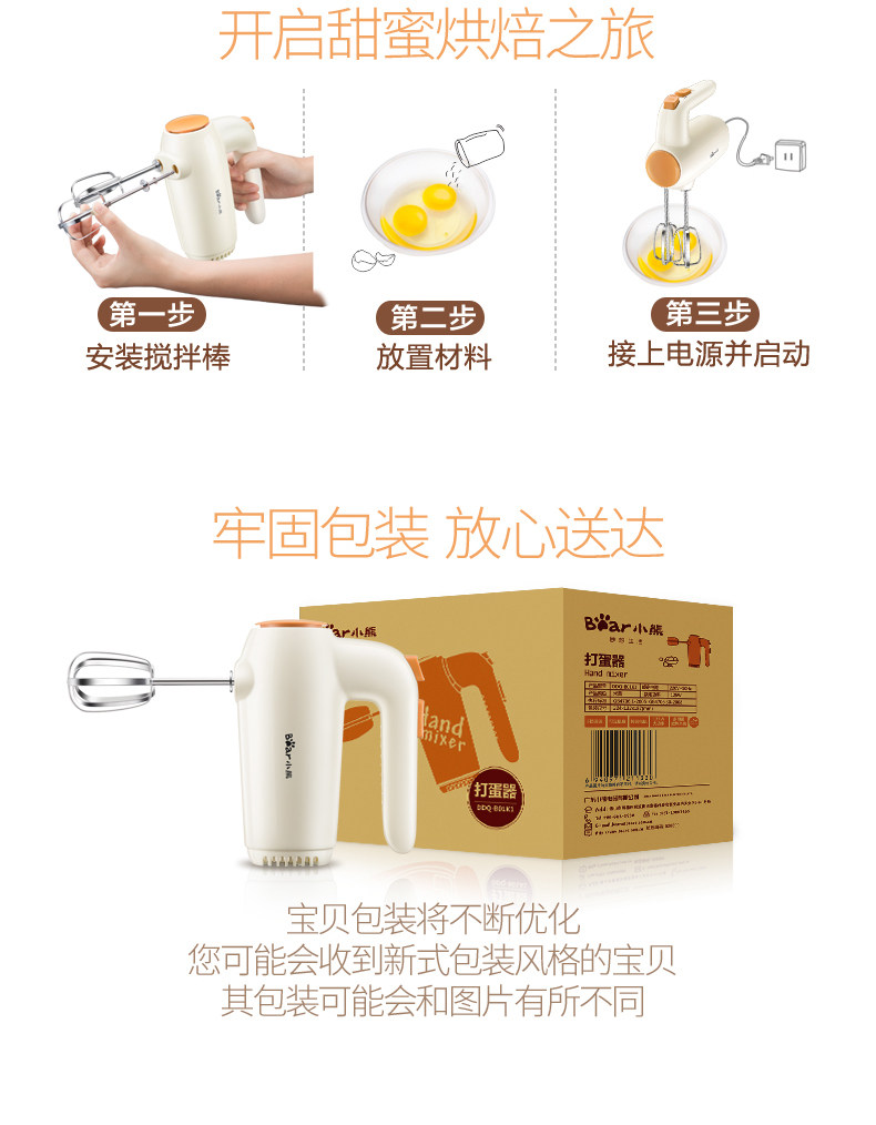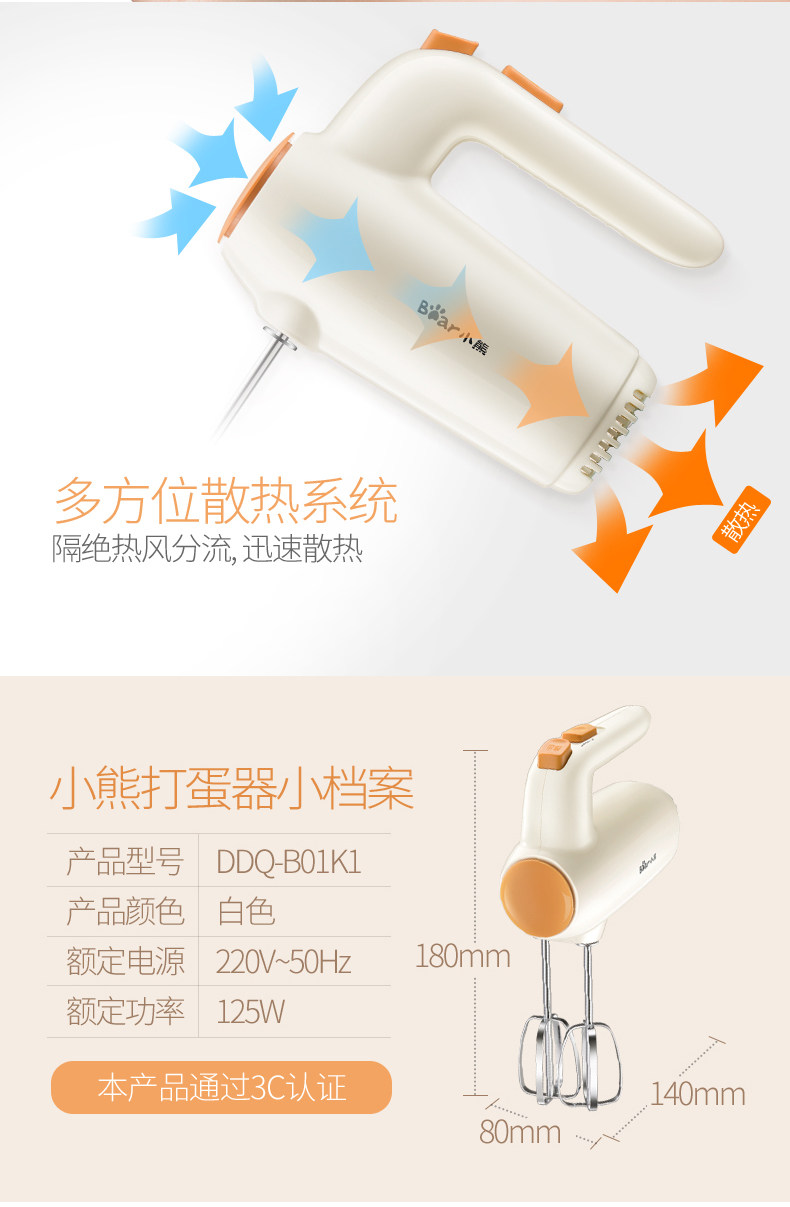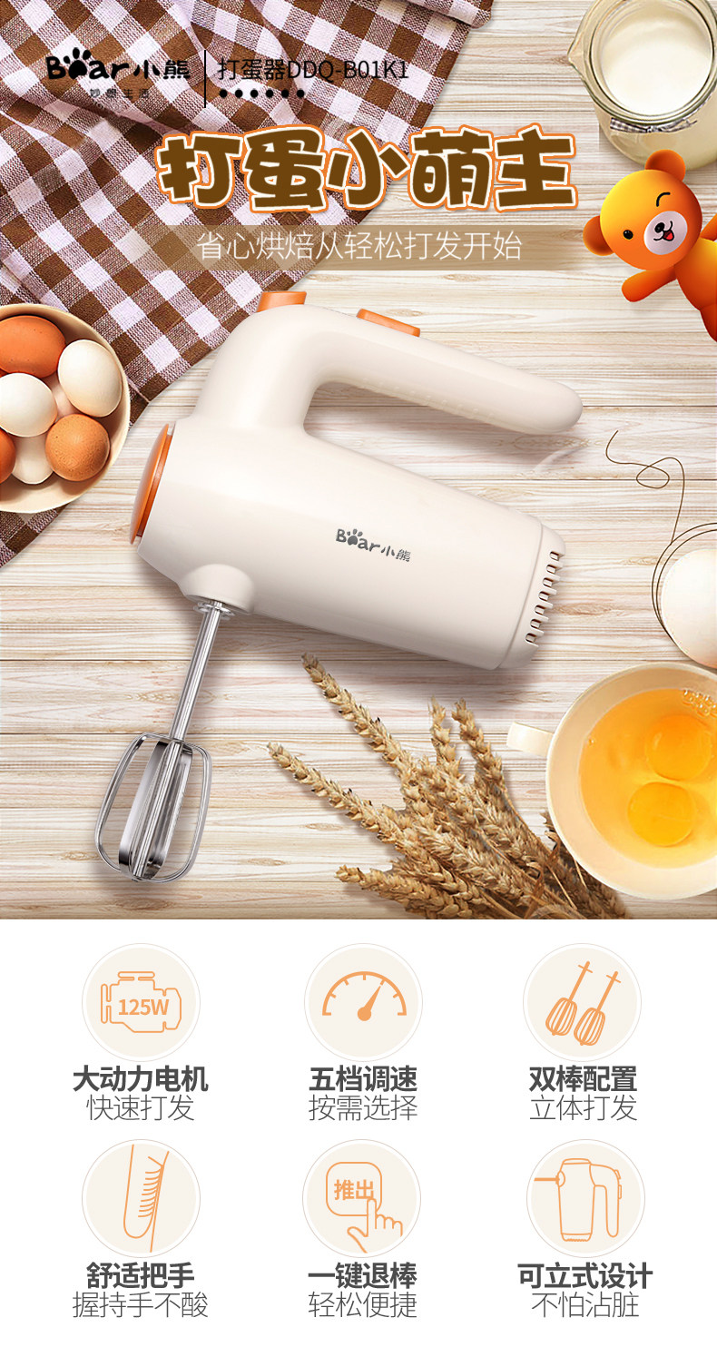 Bear/小熊DDQ-B01K1打蛋器电动家用打奶油烘焙迷你搅拌打蛋机