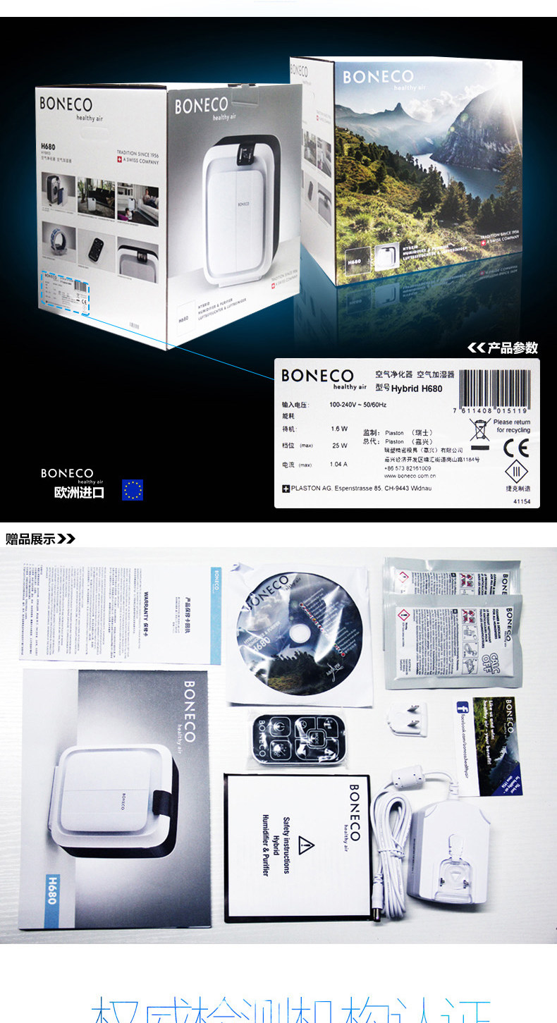 瑞士风/博瑞客空气净化器家用除甲醛pm2.5除尘加湿卧室净化H680