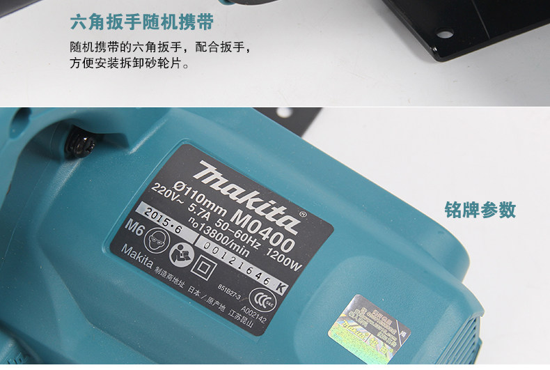 以下是牧田切割机M0400B云石机多功能木材切割机开槽切割机家用切石材的详细说明,厂家介绍,求购联系信息,最终解释权归牧田(中国)有限公司所有