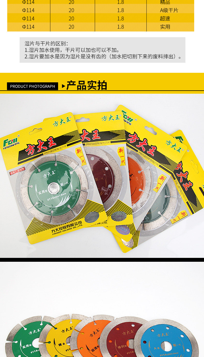 湿片与干片的区别:1.湿片加水使用,干片可以加也可以不加。2.湿片要加水是因为湿片是没有齿的(加水把切割下来的废料排出)。