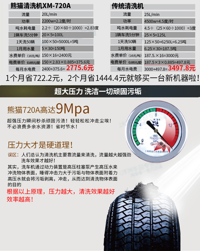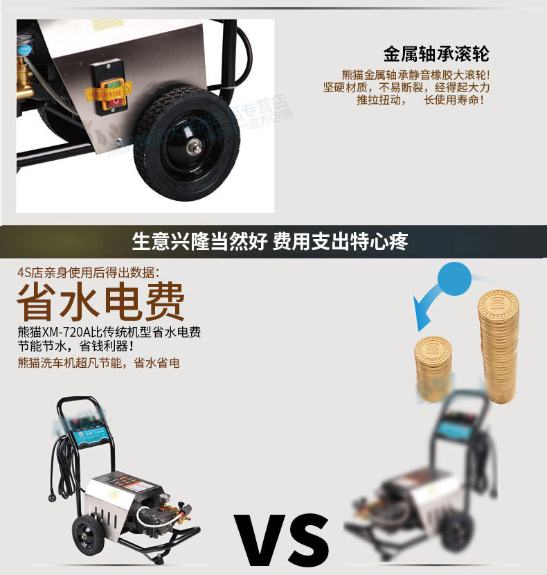 熊猫商用高压清洗机220v洗车机全铜家用自助水枪洗车行专业刷车泵