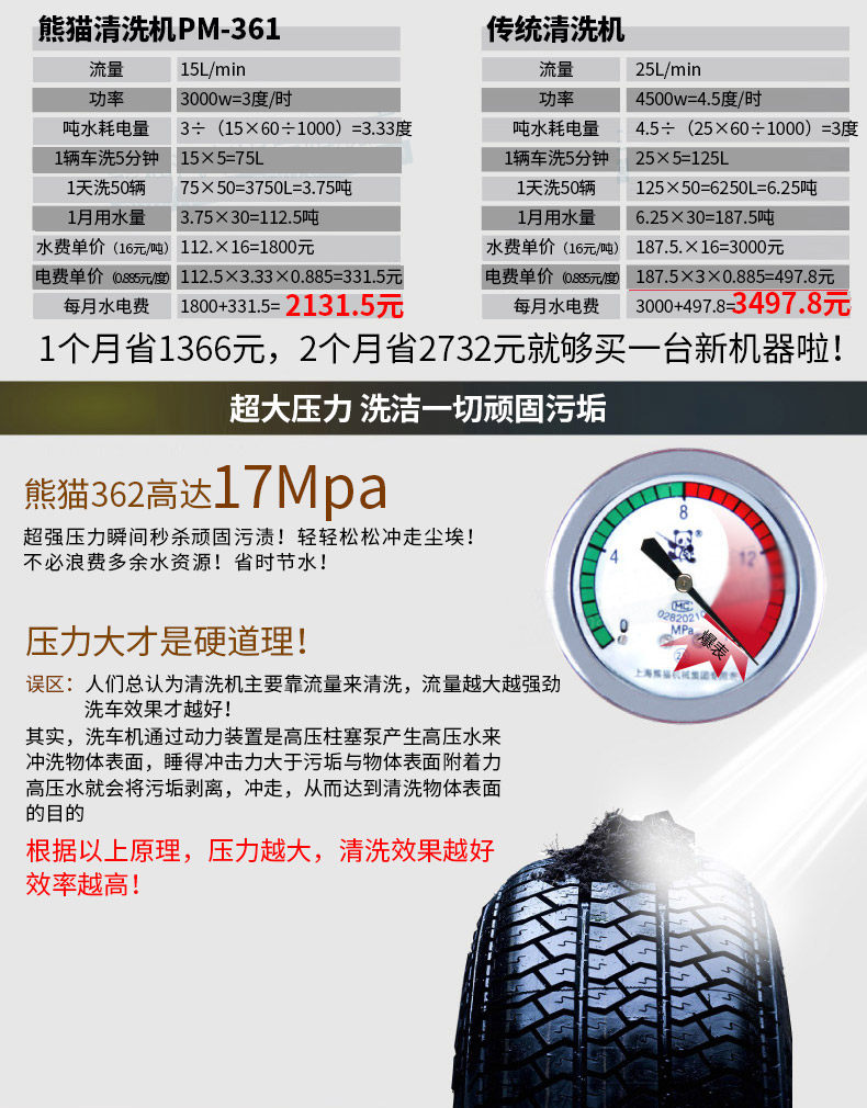 熊猫商用高压清洗机220v洗车机全铜家用自助水枪洗车行专业刷车泵