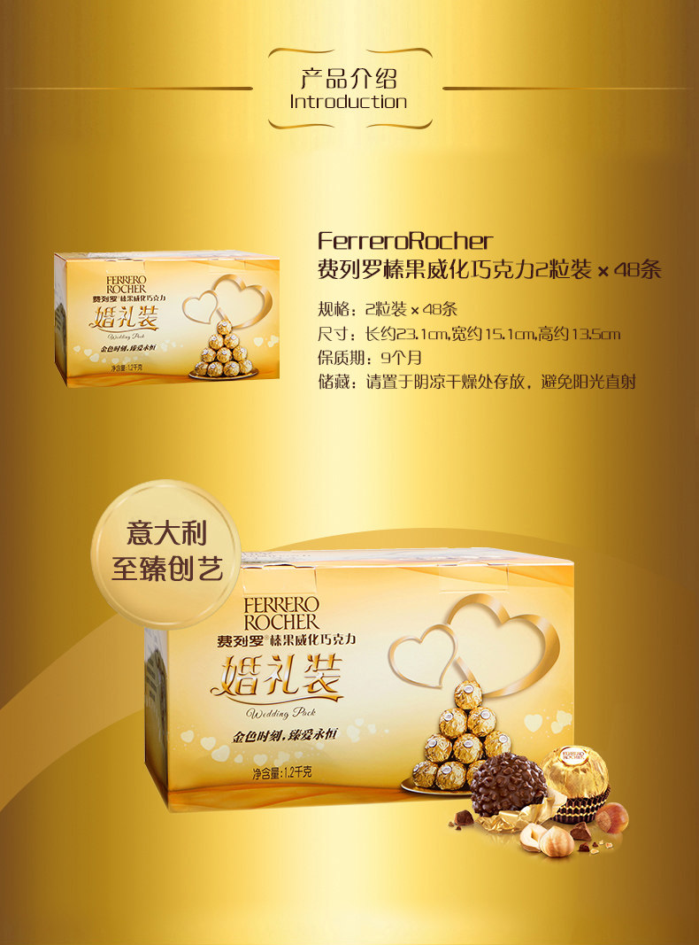 费列罗巧克力进口拉斐尔白球椰蓉酥球糖果48粒喜糖批发礼袋