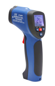 CEM DT-8833系列红外+K型热电偶二合一红外线测温仪具有多功能、经济实惠、耐用等特点。本型号手持式二合一红外线测温仪既可用于测量移动物体、带电表面和难以接触到的物体,也可用K型温度探头接触式测量,接触与非接触式测量结合,使您的测温工作更加得心应手。 |