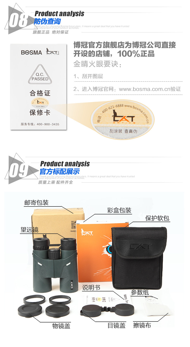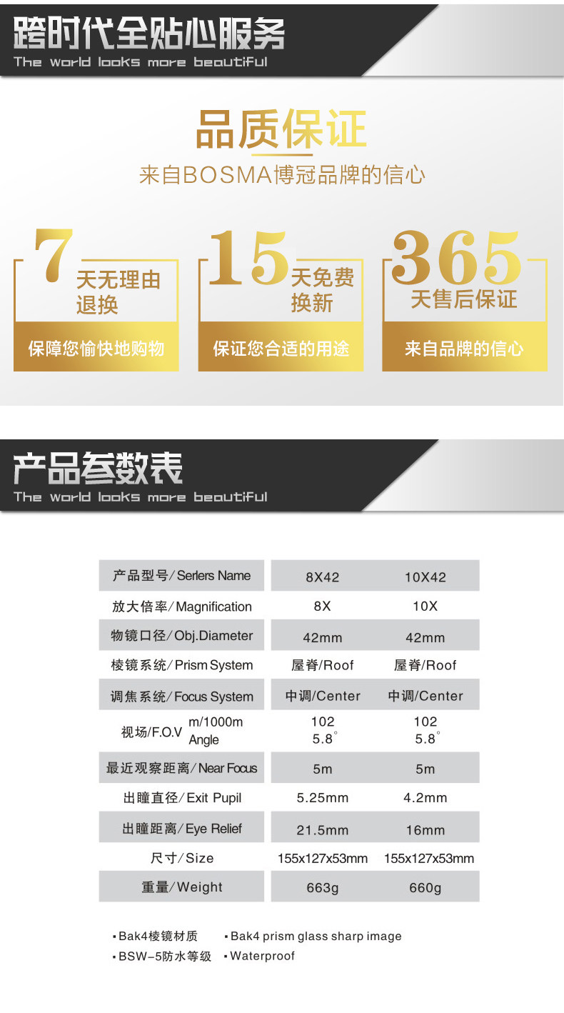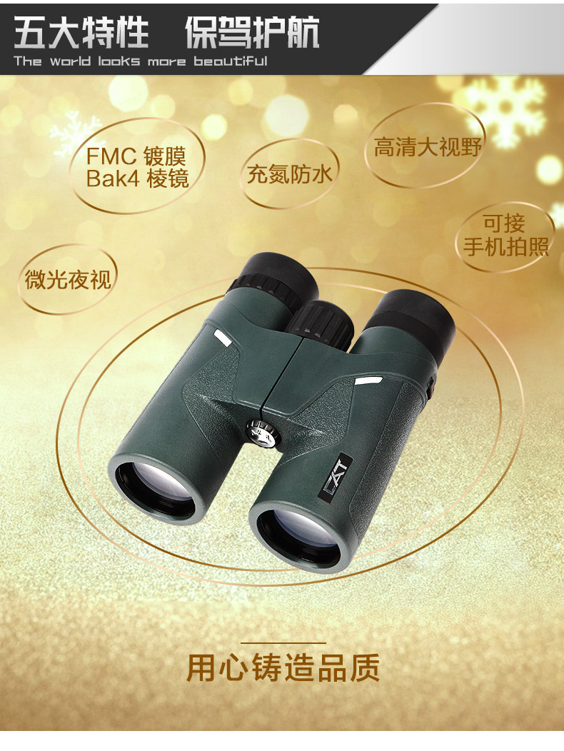BOSMA博冠望远镜双筒金虎10X42高清微光夜视充氮防水手机望远镜
