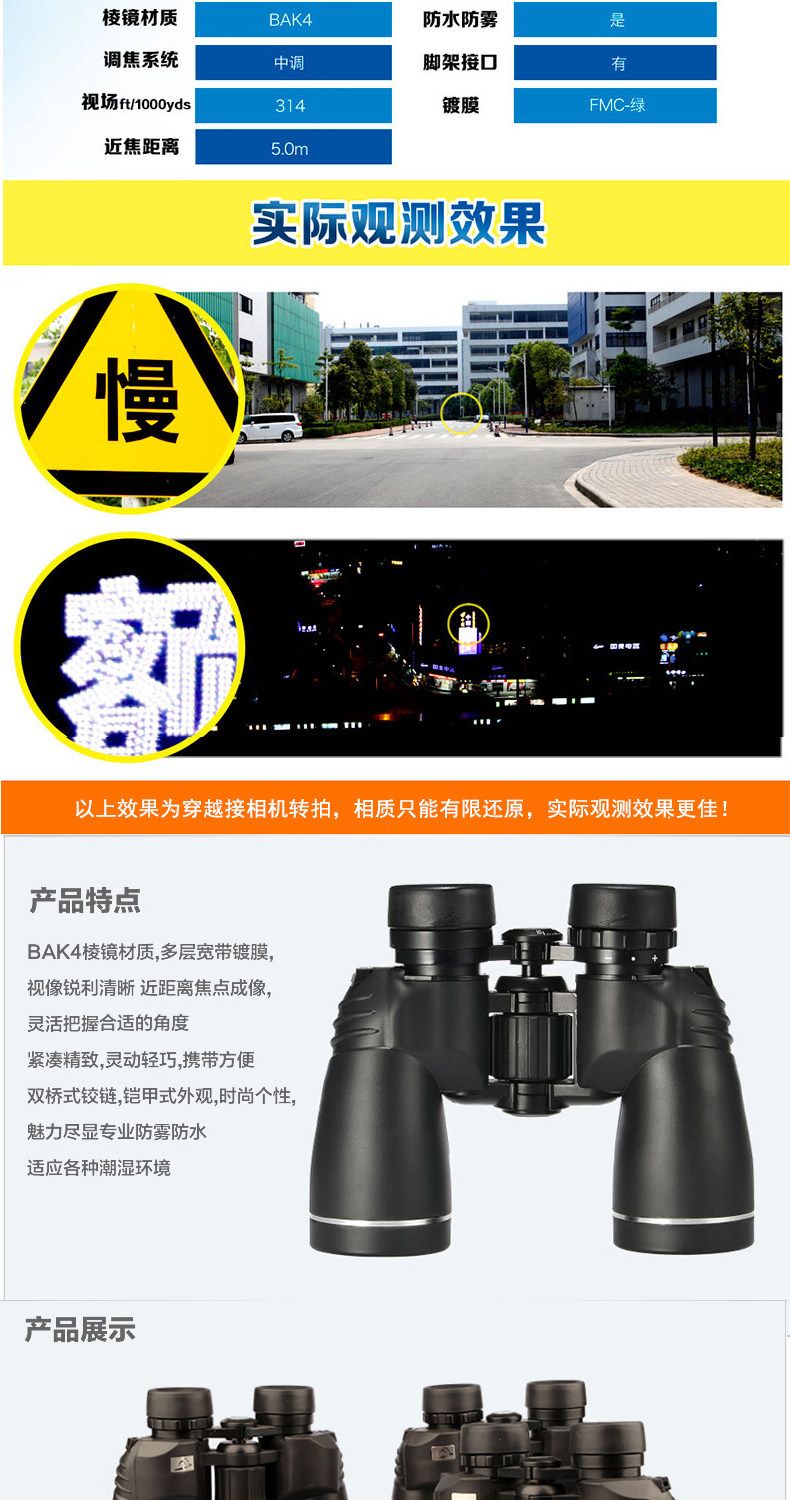 博冠BOSMA驴友10X50双筒望远镜高倍高清望眼镜广角设计