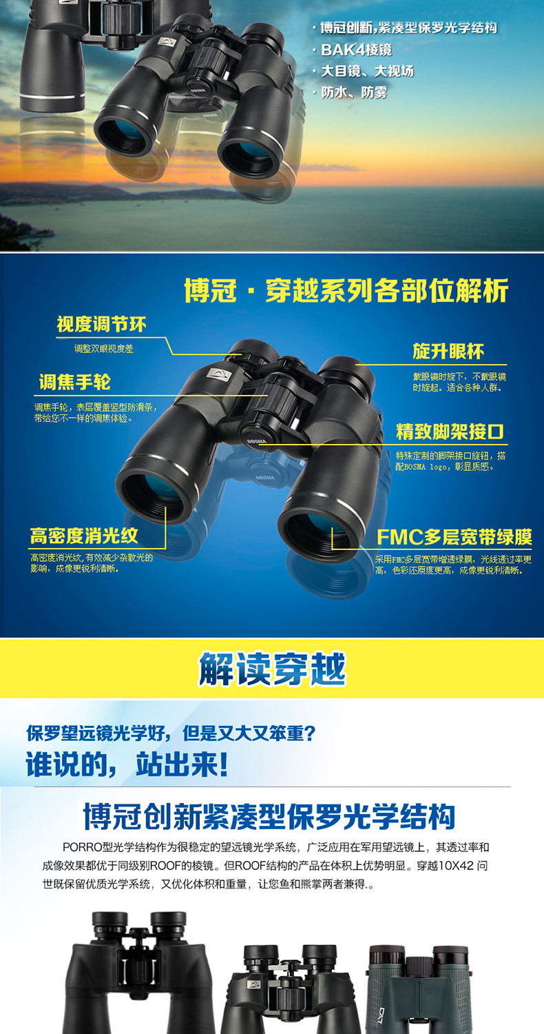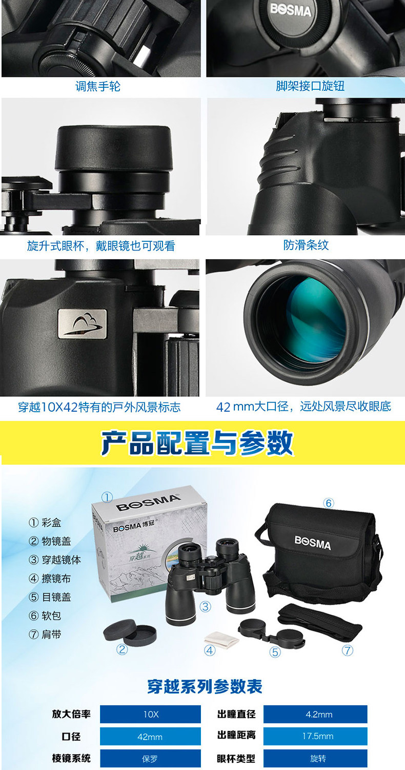 BOSMA博冠望远镜双筒金虎10X42高清微光夜视充氮防水手机望远镜