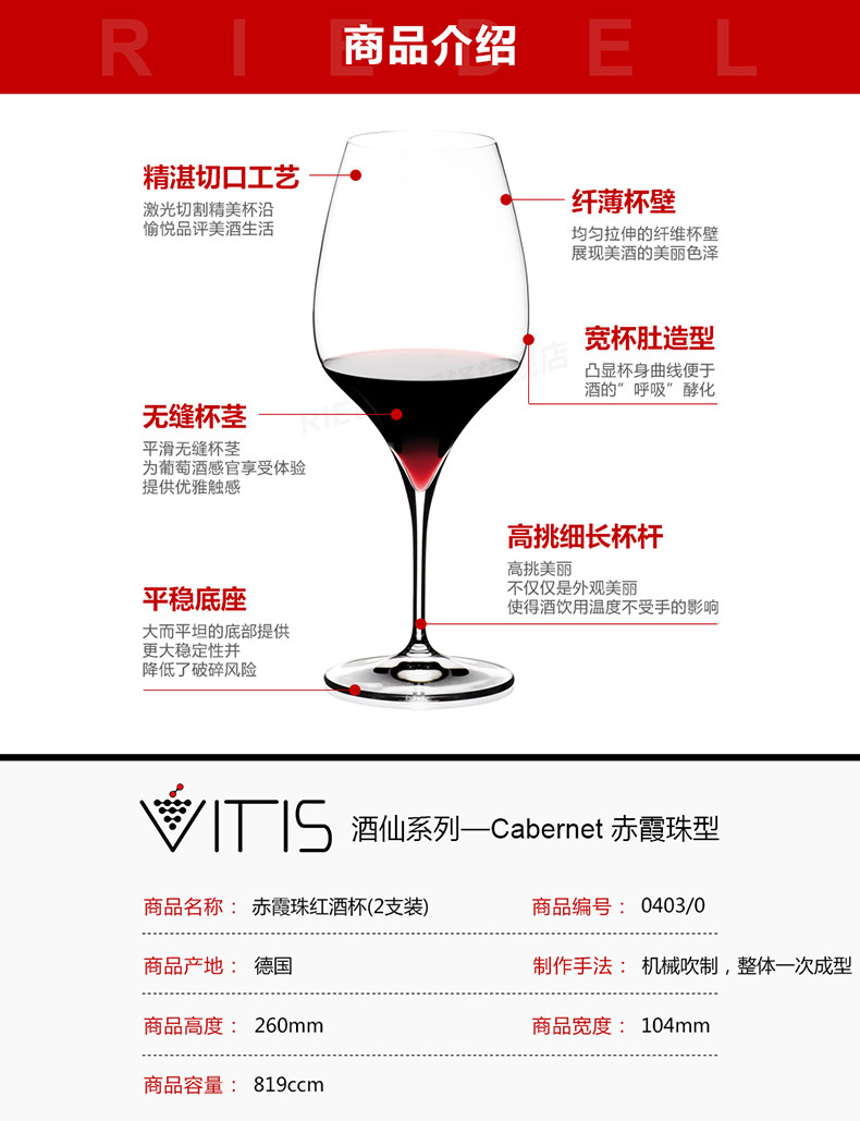 奥地利RIEDEL VITIS系列赤霞珠红酒杯高脚杯无铅水晶杯德国进口