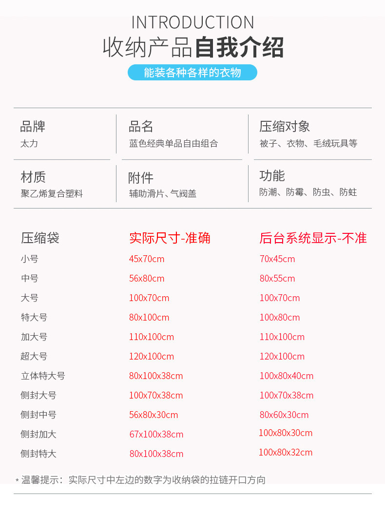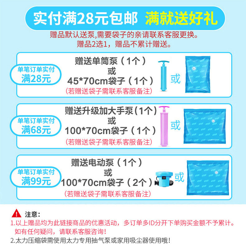 太力抽气真空压缩袋衣物棉被子特大中小号收纳袋防潮真空袋整理袋