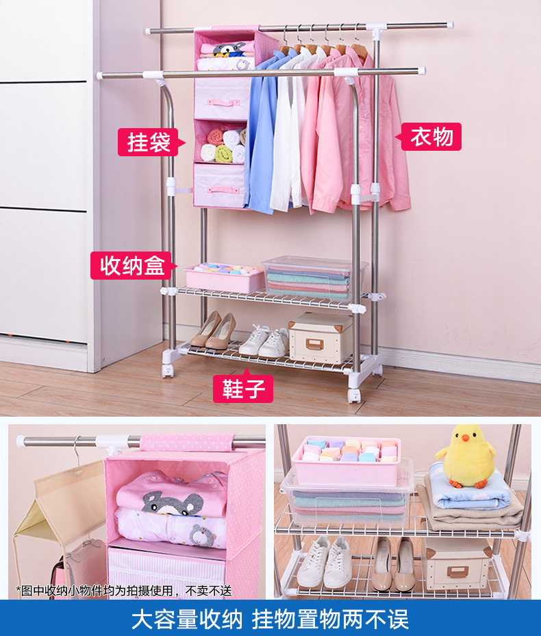 友利特落地晾衣架 双杆加厚挂衣服架子不锈钢室内晒衣架移动衣架