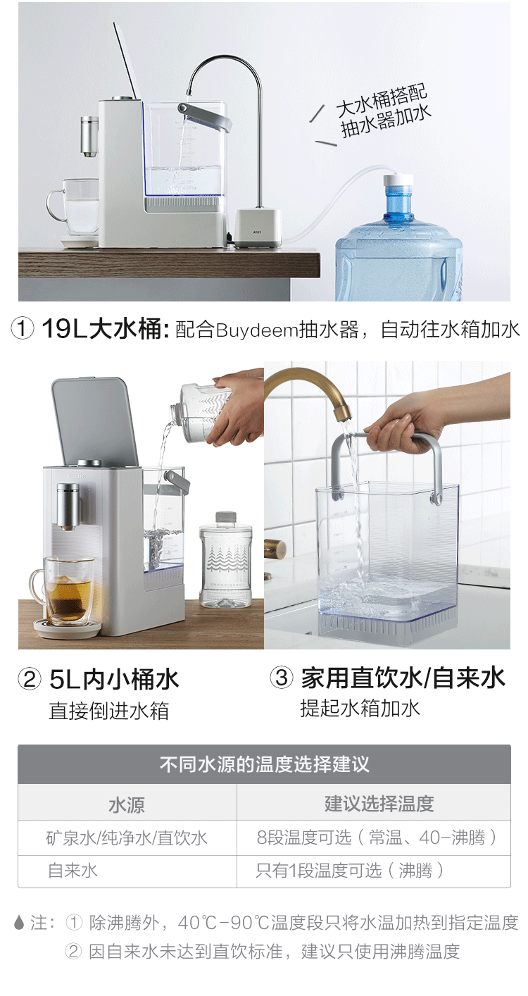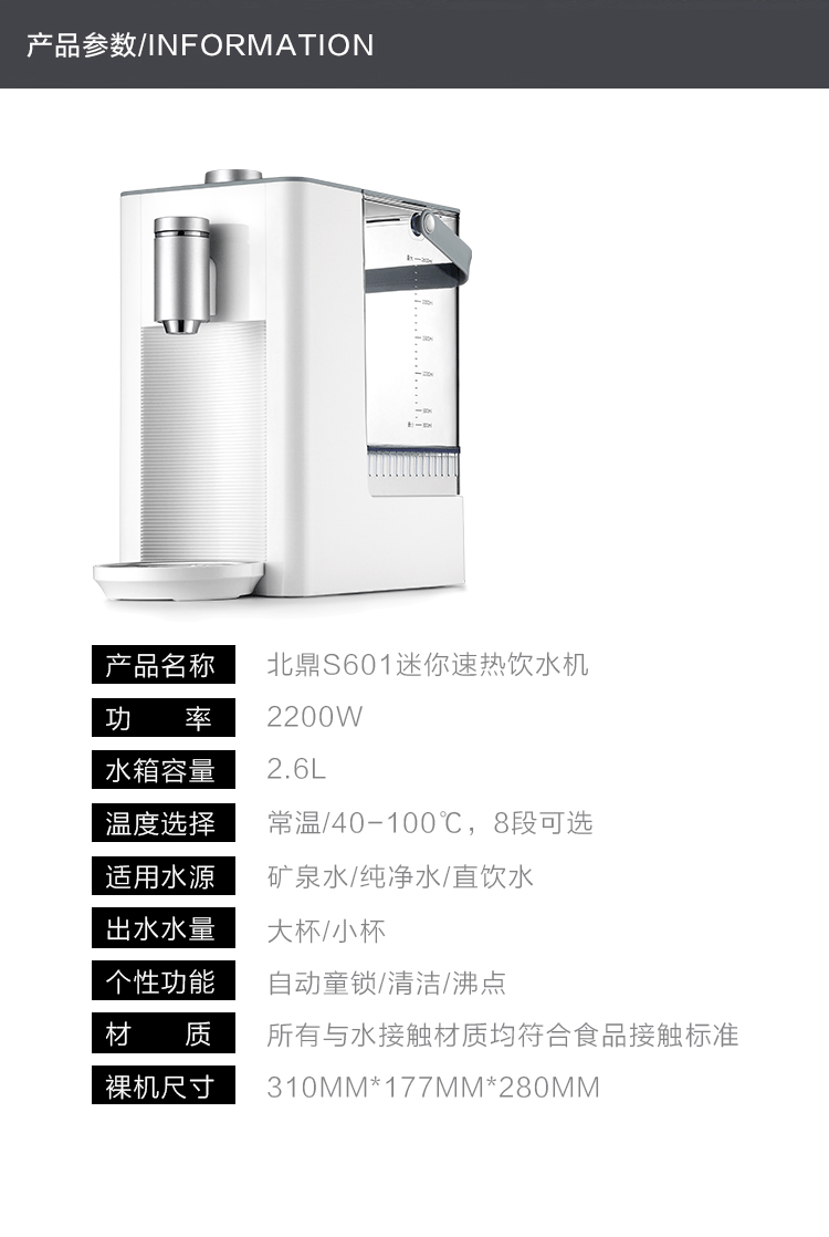 Buydeem/北鼎 S601钢琴白小型台式饮水机家用即热式开水机迷你