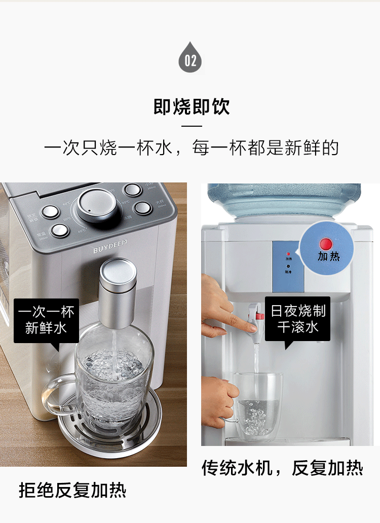 Buydeem/北鼎 S503黑白两色小型台式饮水机家用即热式开水机迷你