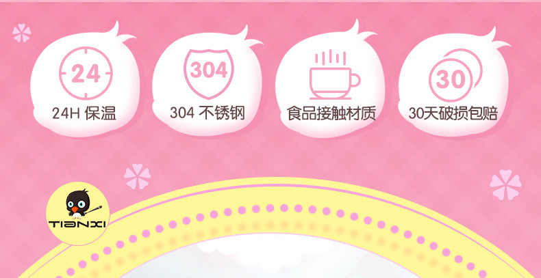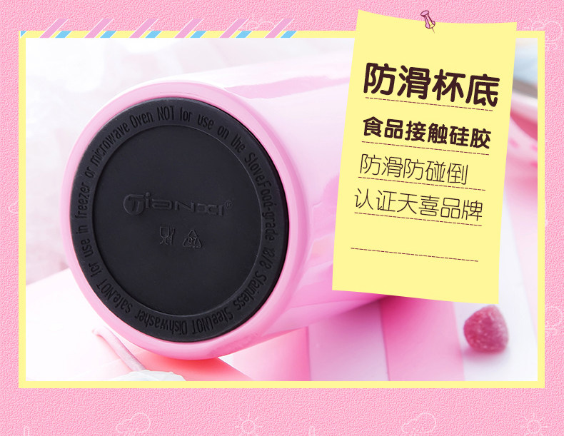 天喜保温杯女儿童学生韩国男茶杯大容量不锈钢杯子可爱便携水杯