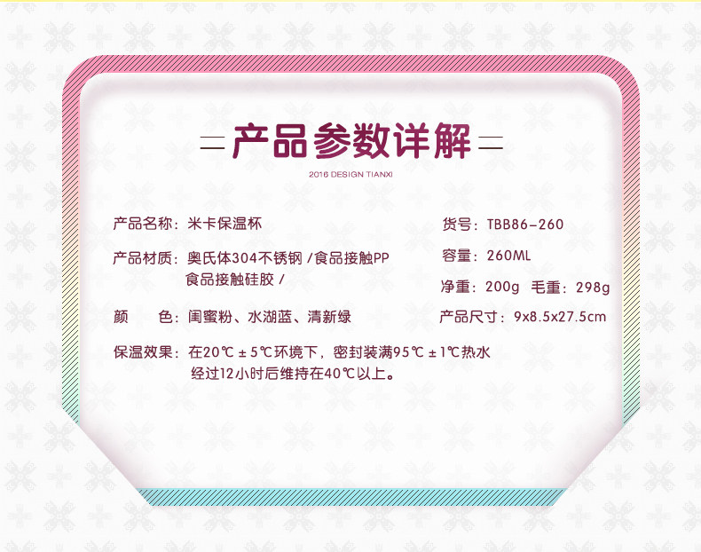 天喜保温杯便携真空不锈钢杯子创意男女士保温瓶学生儿童可爱水杯