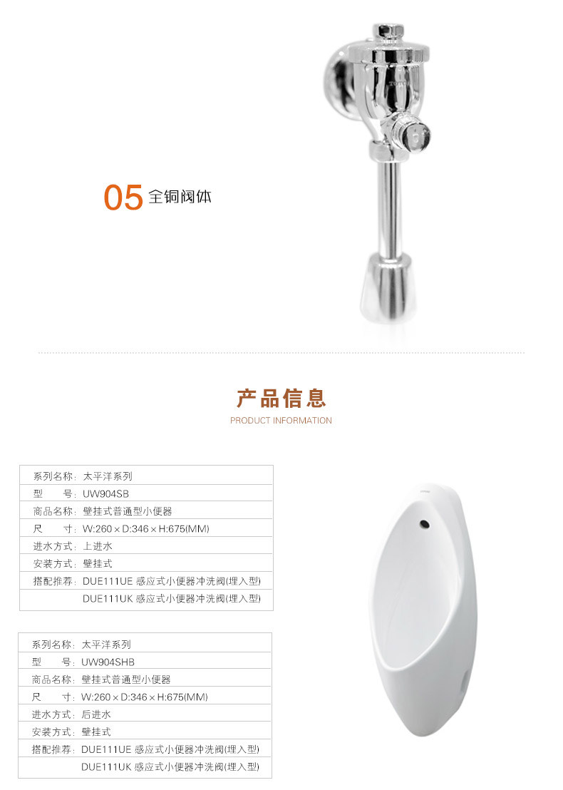 推荐搭配:DUE111UE 感应式小便器冲洗阀(埋入式)
