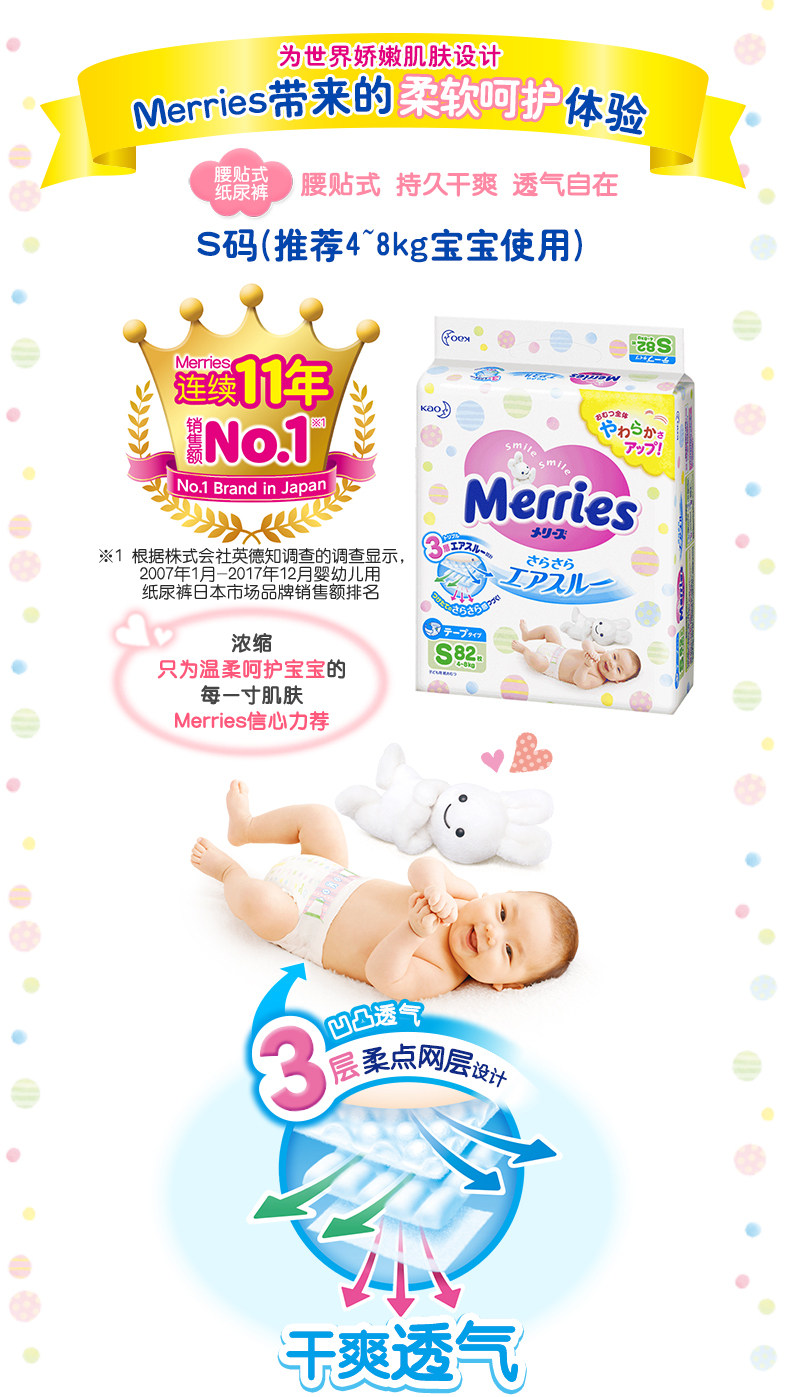 日本原装花王妙而舒婴儿尿不湿花王纸尿裤小号(S)82片