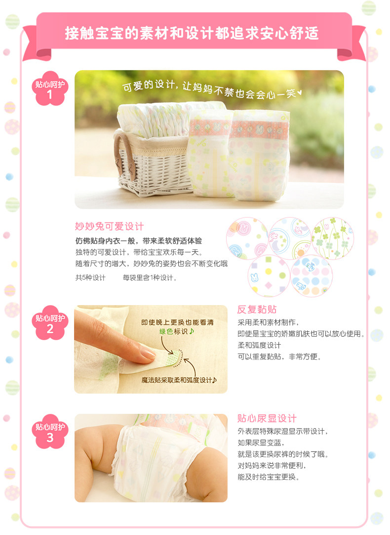 【正式】花王妙而舒瞬爽透气婴儿纸尿裤 彩箱装中号(M)152片