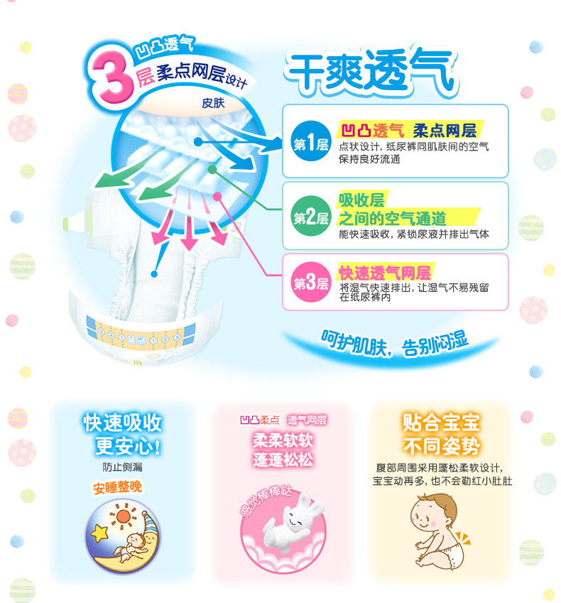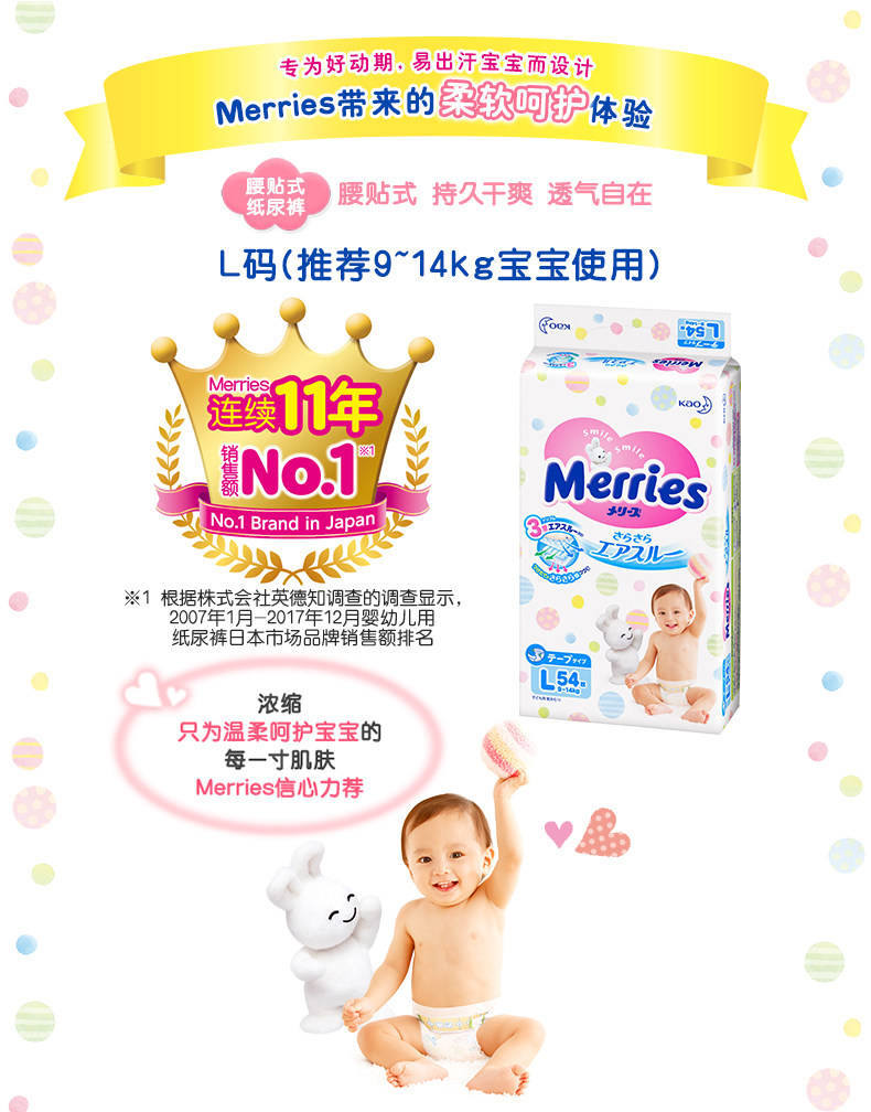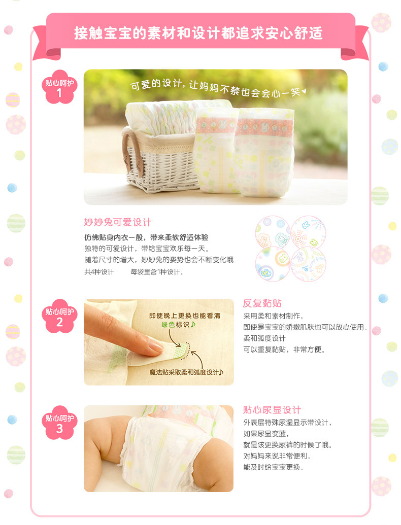 【正式】花王妙而舒瞬爽透气婴儿纸尿裤 彩箱装中号(M)152片