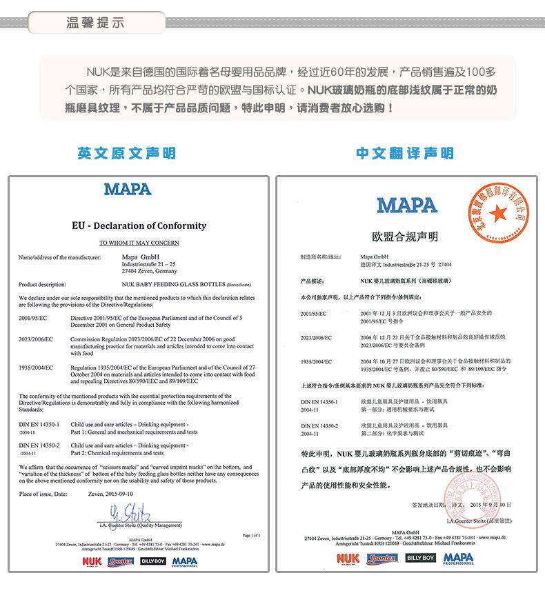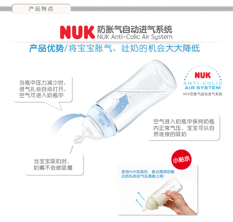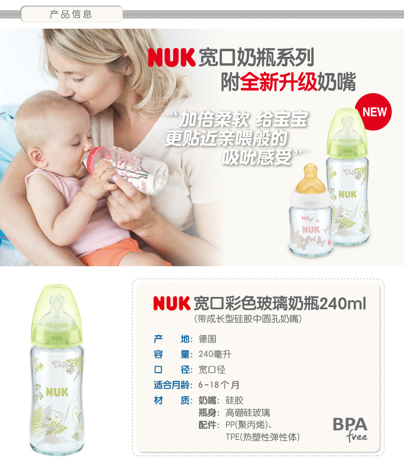 NUK奶瓶NUK迪士尼宽口玻璃奶瓶240ml带初生型硅胶中圆孔奶嘴