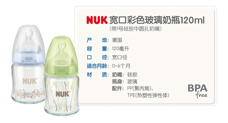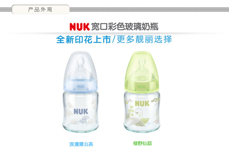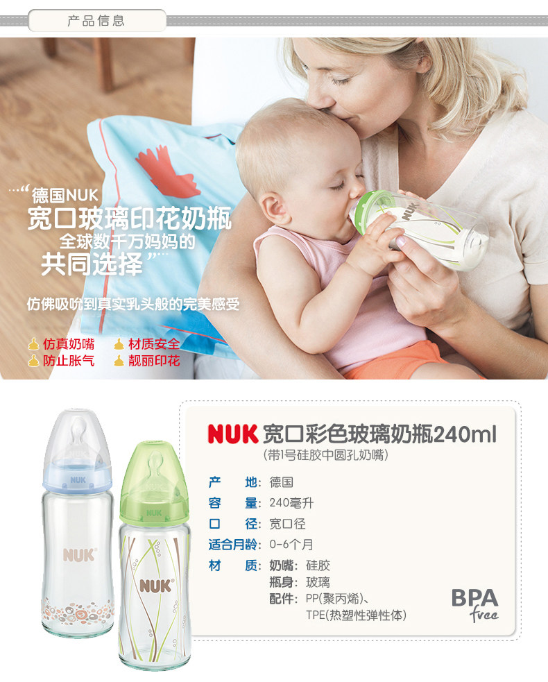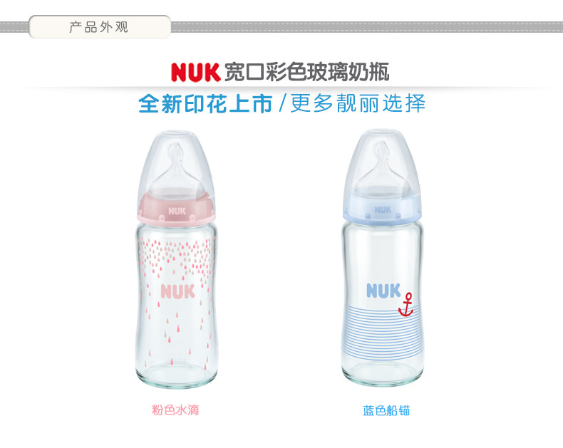 NUK奶瓶NUK迪士尼宽口玻璃奶瓶240ml带初生型硅胶中圆孔奶嘴