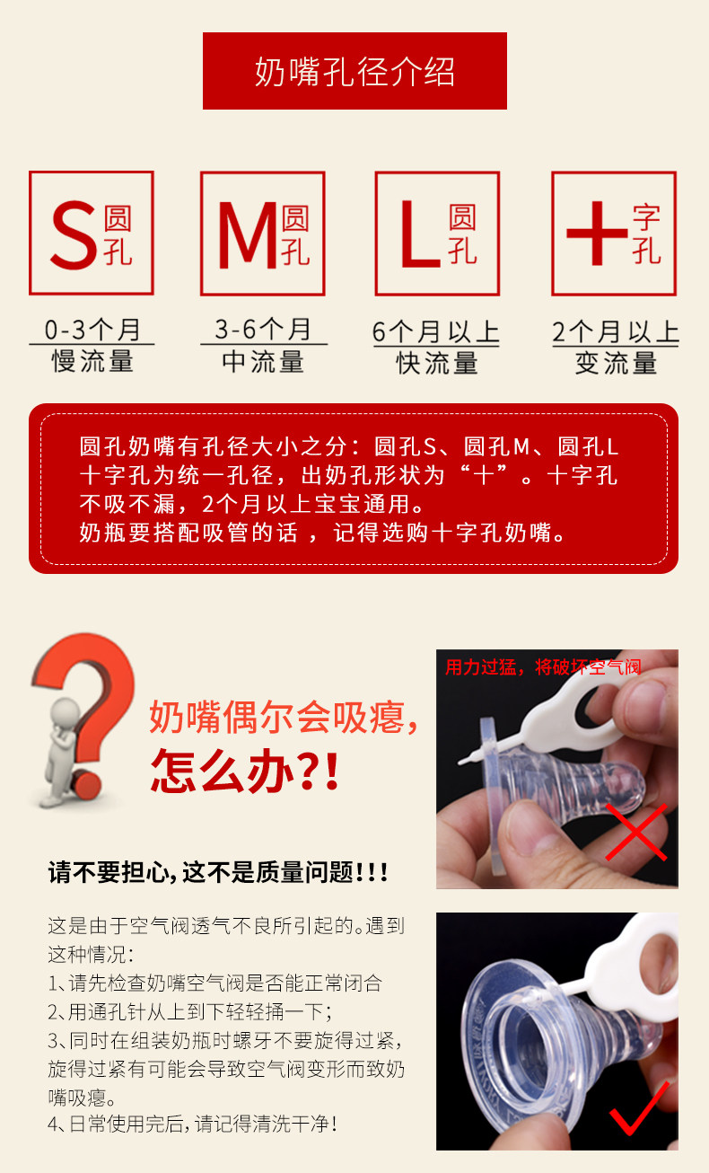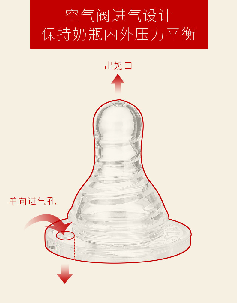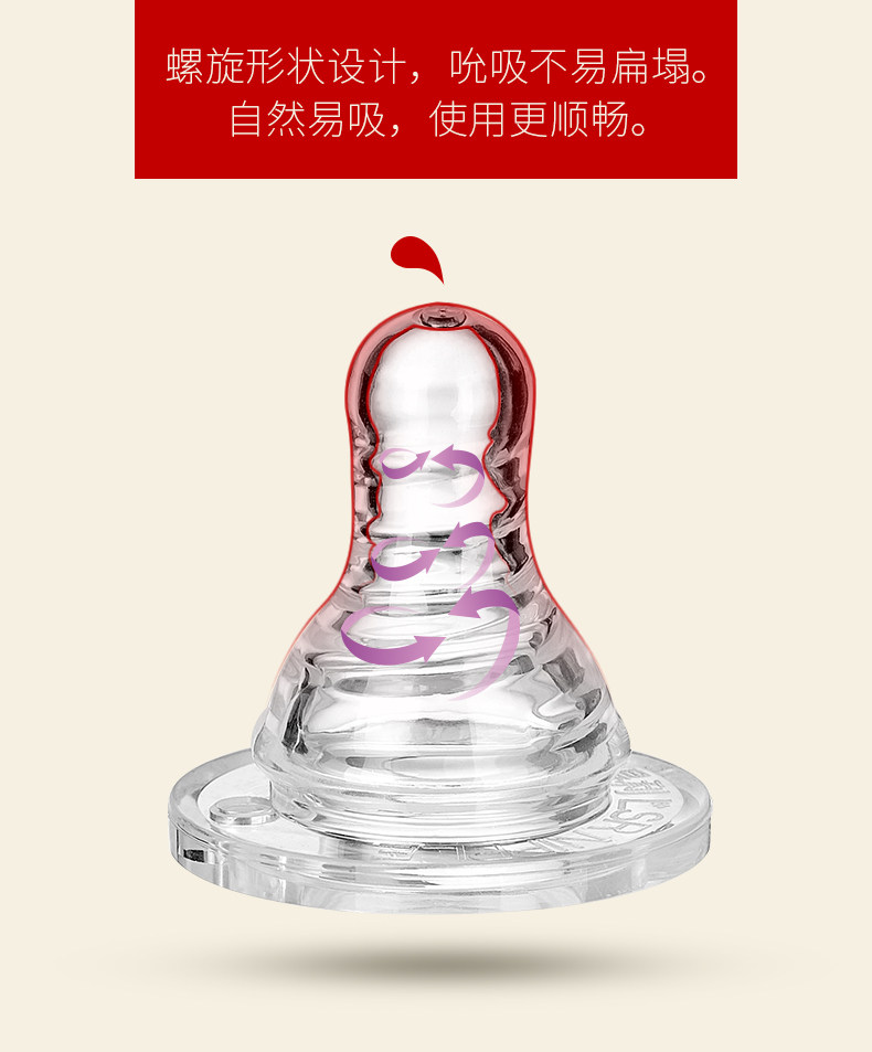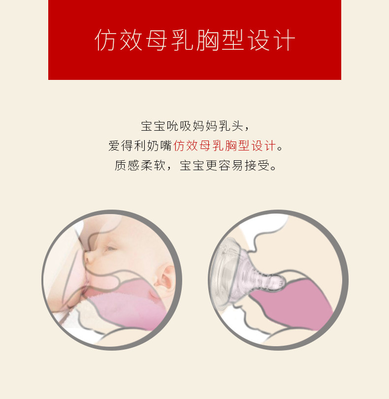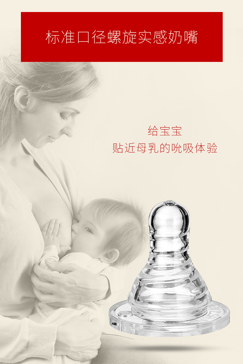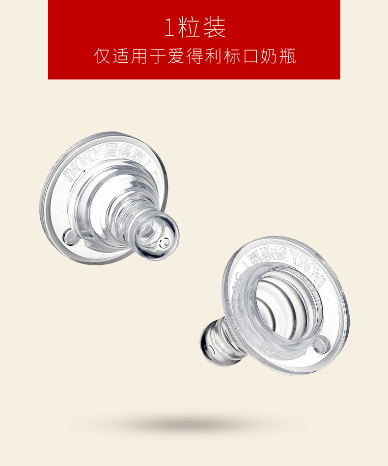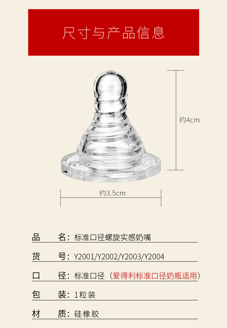 爱得利奶嘴婴儿标准口径螺旋母乳实感1粒装S/M/L/+字孔Y2001-2004