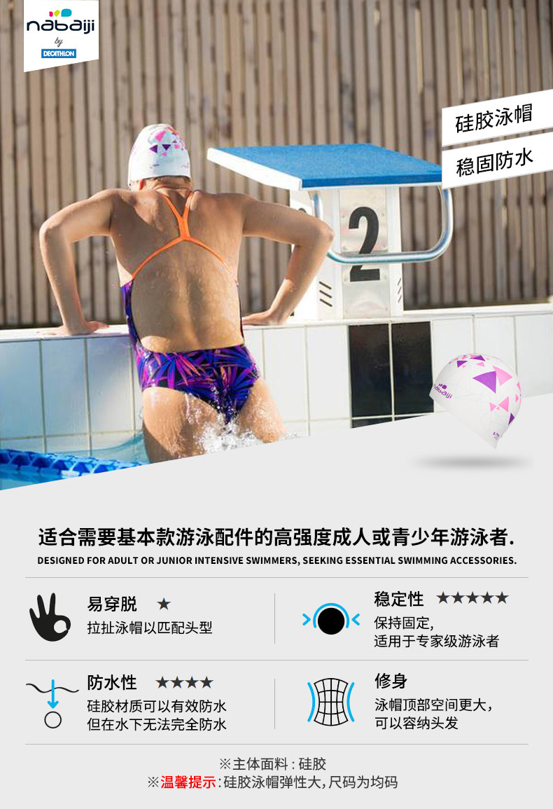 迪卡侬游泳硅胶泳帽女男儿童长发防水时尚印花不勒头NABAIJI k