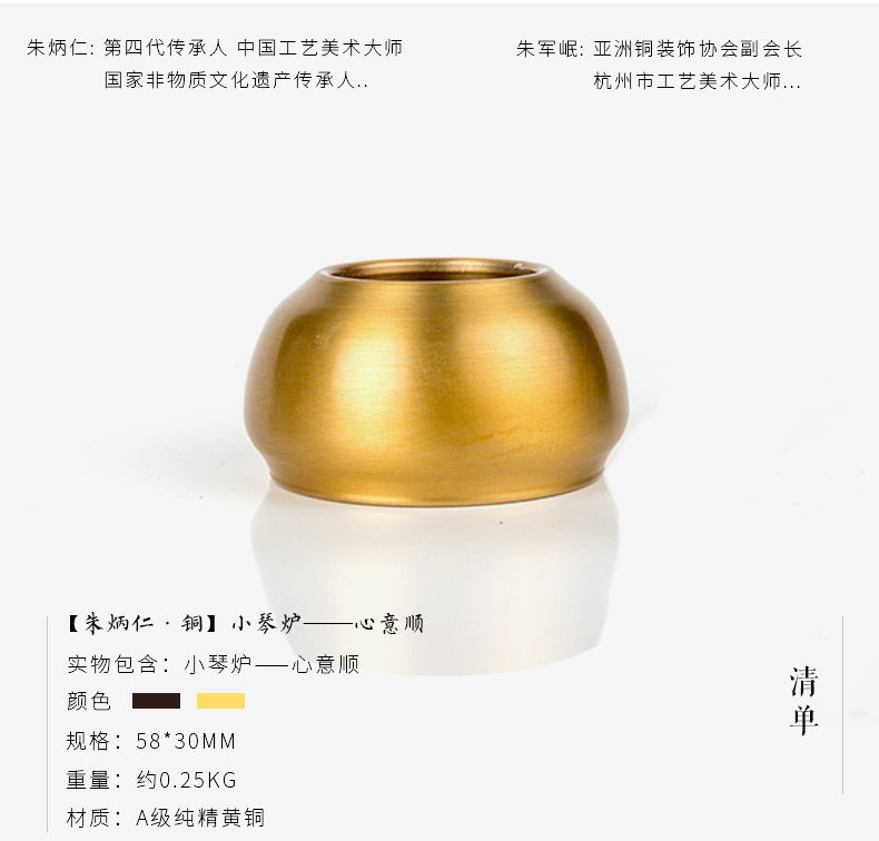 朱炳仁铜知长乐心意顺铜工艺品宣德炉香炉纯铜办公桌装饰摆件创意