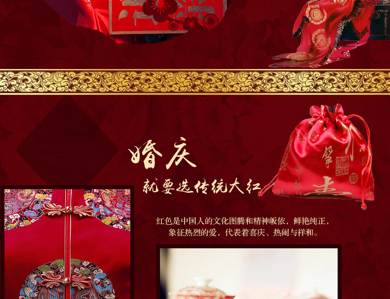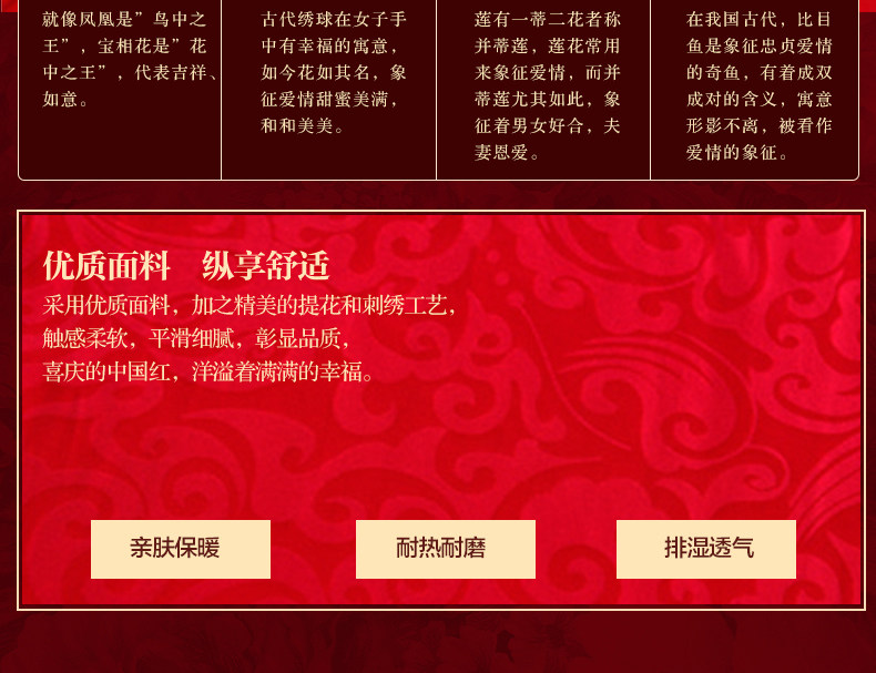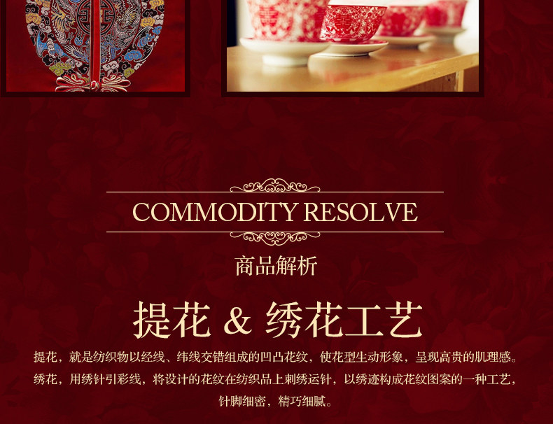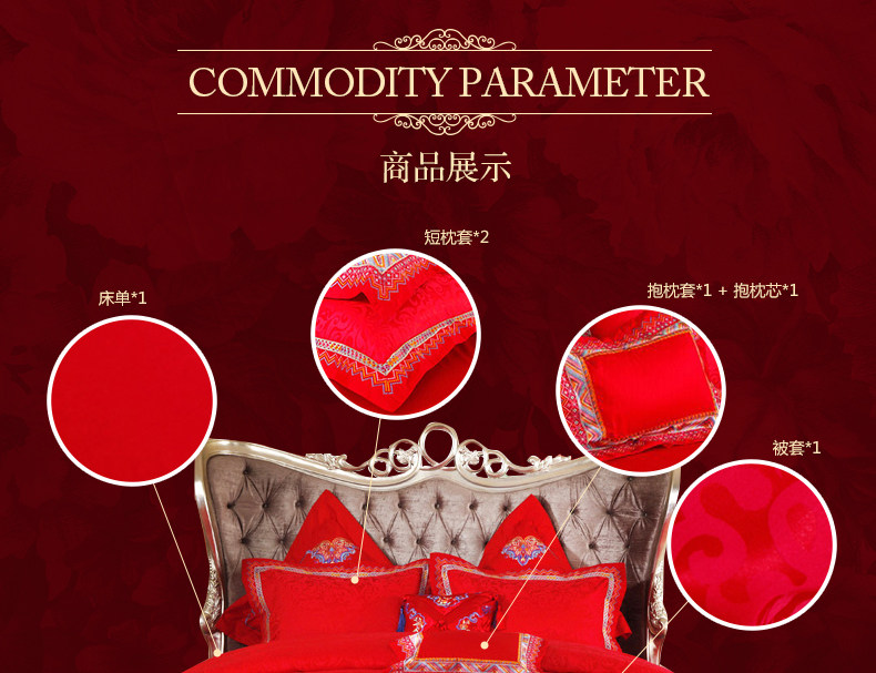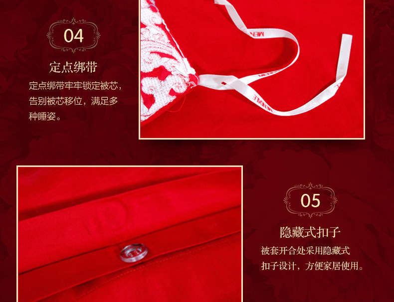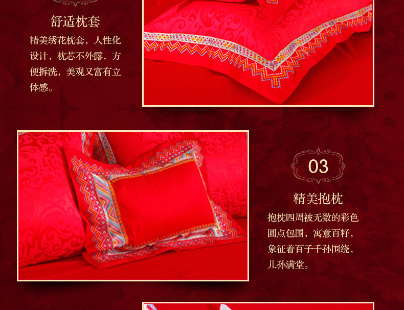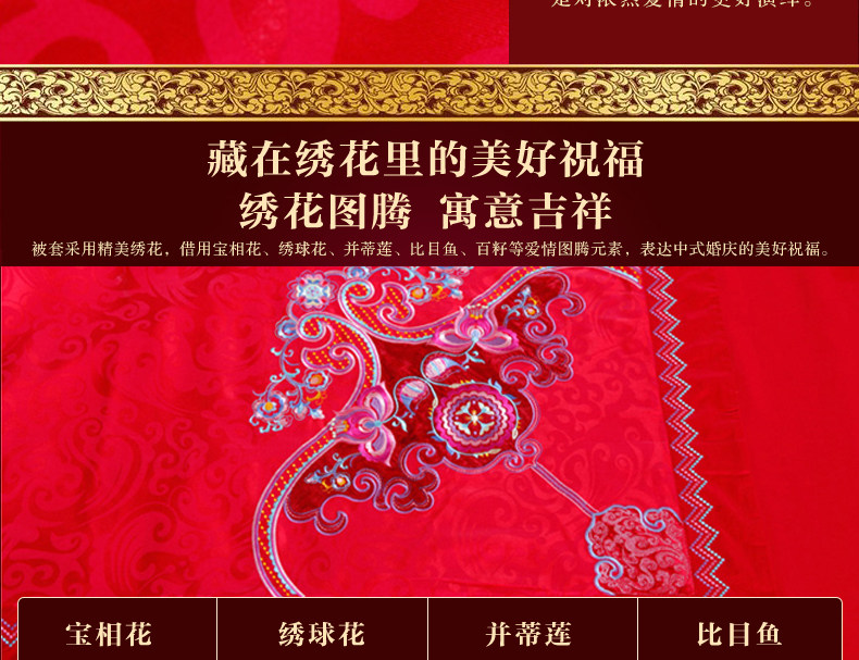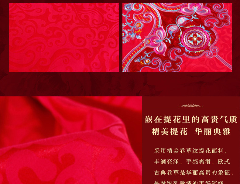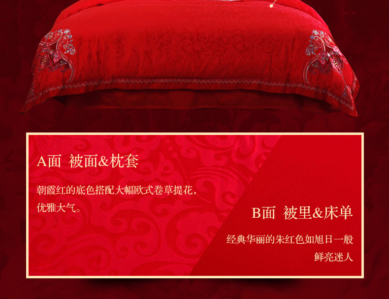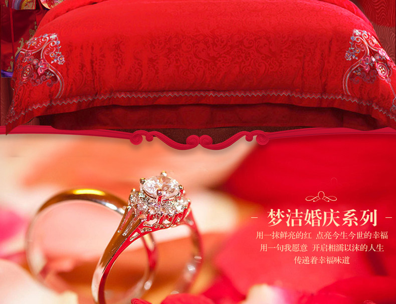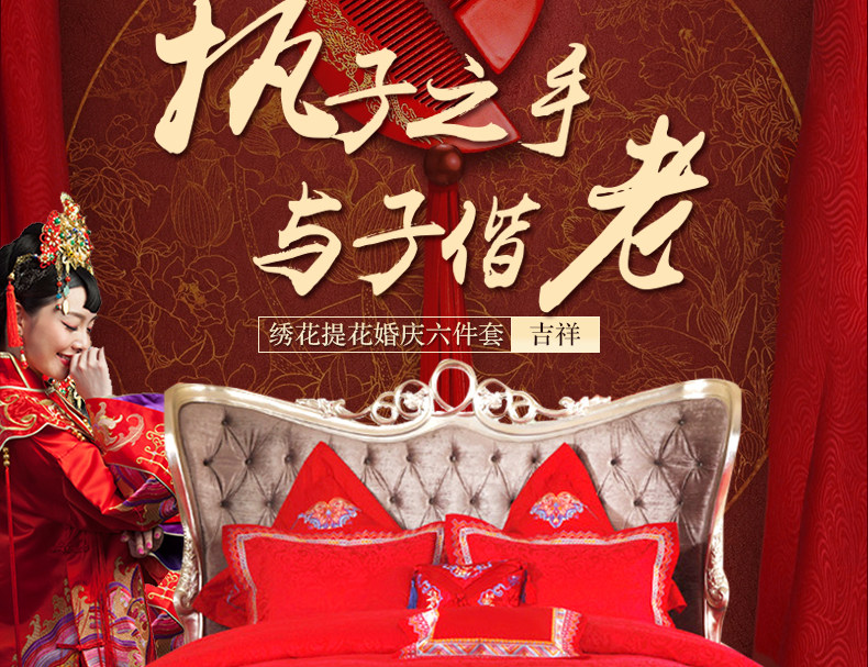 梦洁家纺婚庆套件喜庆床品大红中式刺绣六件套提花结婚吉祥