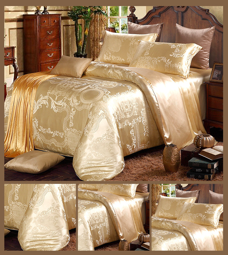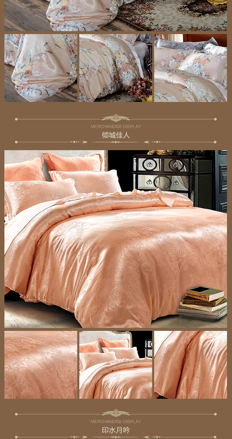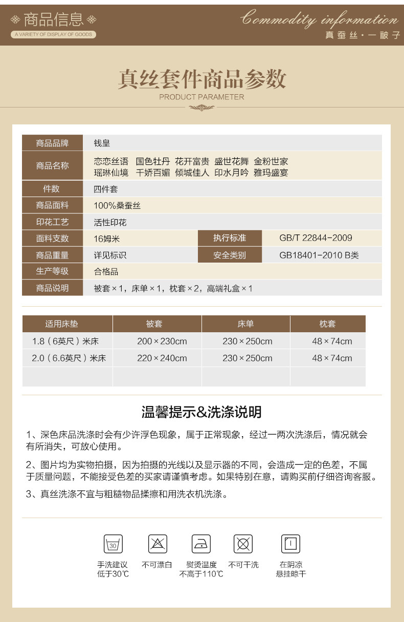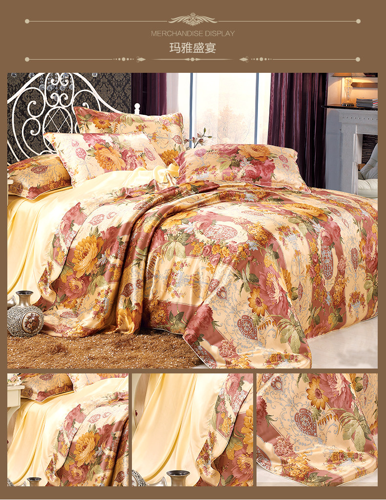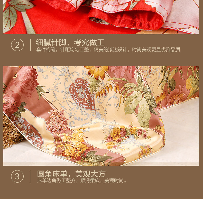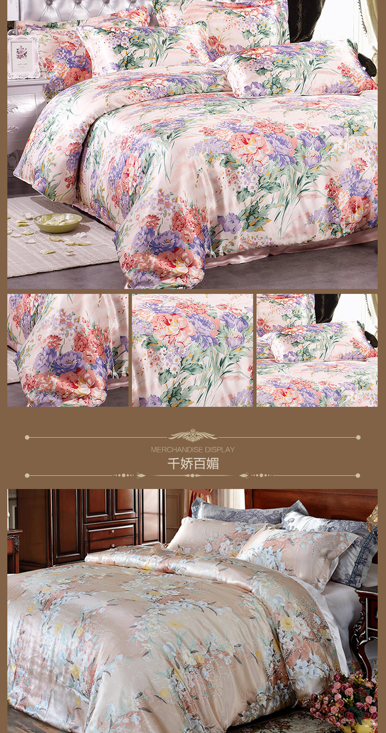 钱皇100%双面真丝四件套 丝绸婚庆印花套件 真丝床上用品床单枕套