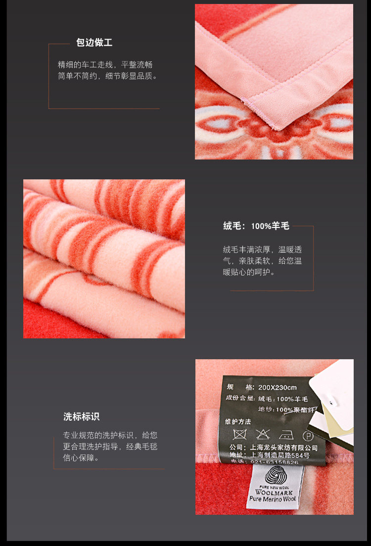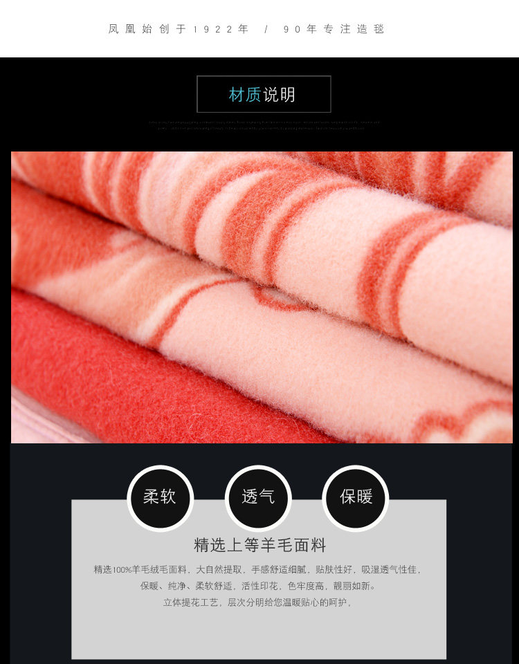 凤凰毛毯 90年历史上海老字号全纯羊毛毯美丽诺绒毛纯羊毛毯