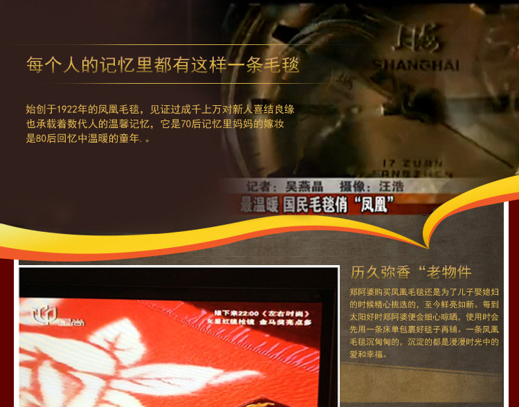 90年历史中华老字号凤凰新西兰纯全羊毛毯经典婚庆结婚国民毛毯