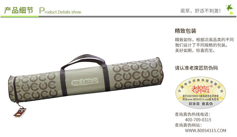 老席匠凉席 碳化席子折叠双面竹席三件套1.8m天然竹凉席1.5米